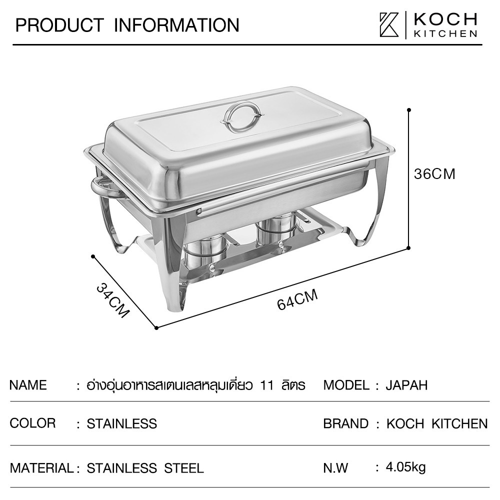 KOCH KITCHEN อ่างอุ่นอาหารสเตนเลสหลุมเดี่ยว 11 ลิตร 64×36×34 ซม. JAPAH