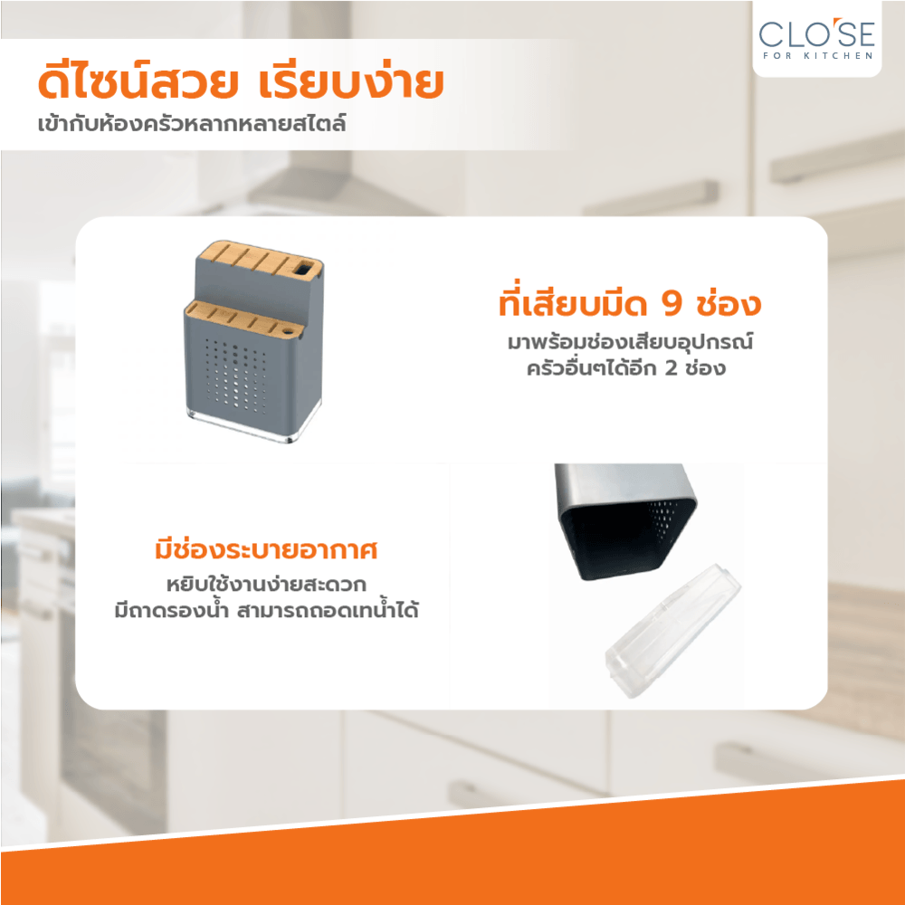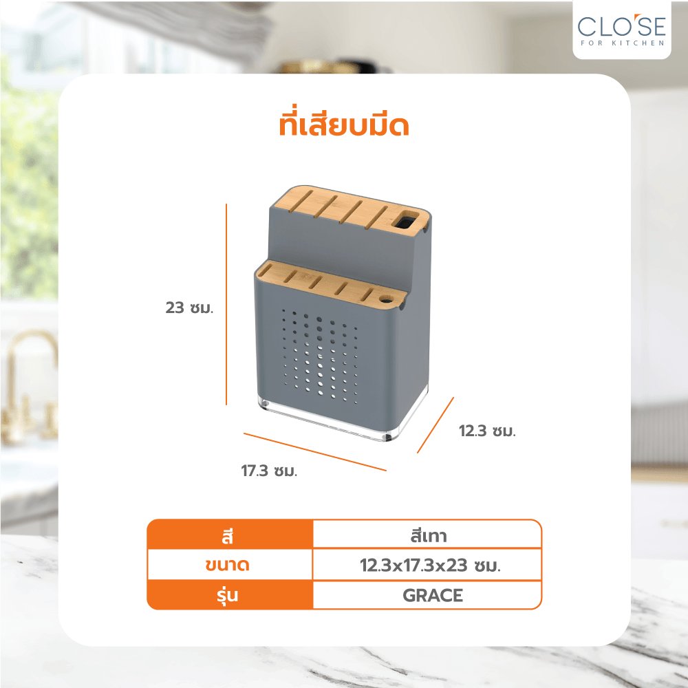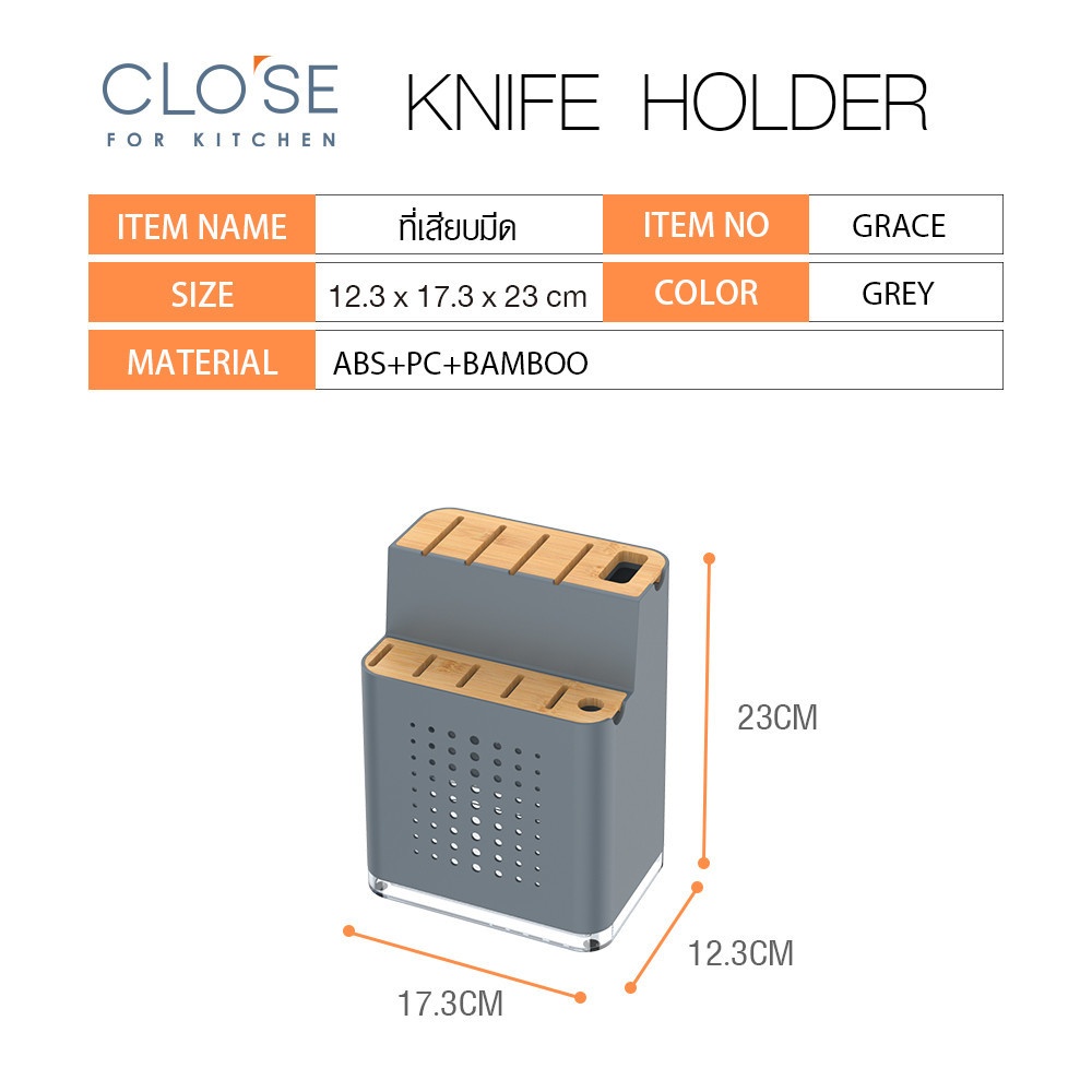 CLOSE ที่เสียบมีด 12.3x17.3x23 ซม. GRACE สีเทา