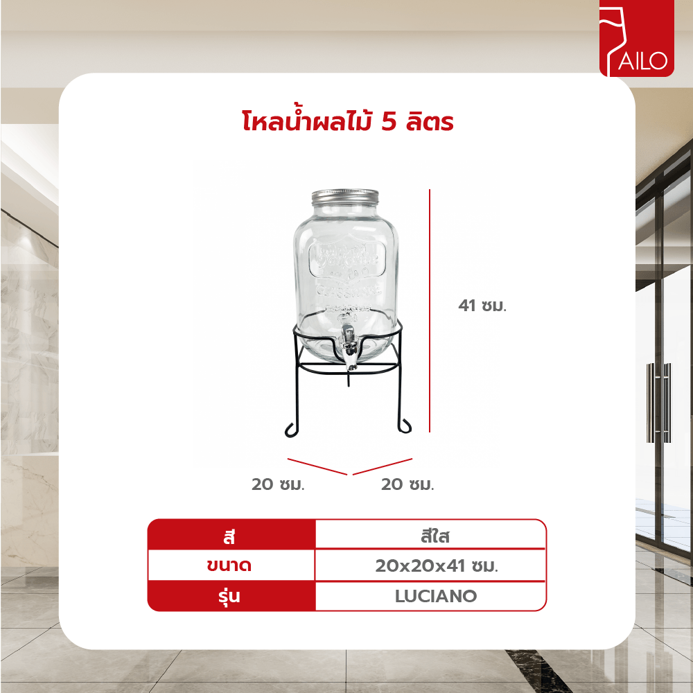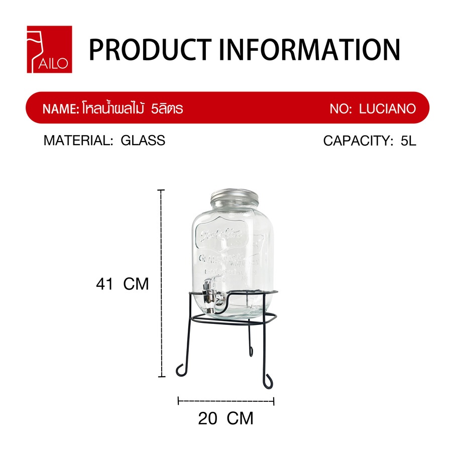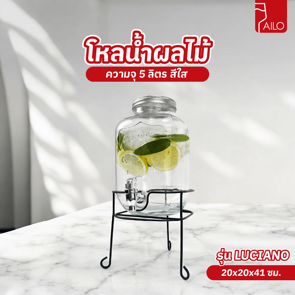 AILO โหลน้ำผลไม้ 5 ลิตร 20x20x41 ซม. LUCIANO พร้อมขาตั้ง