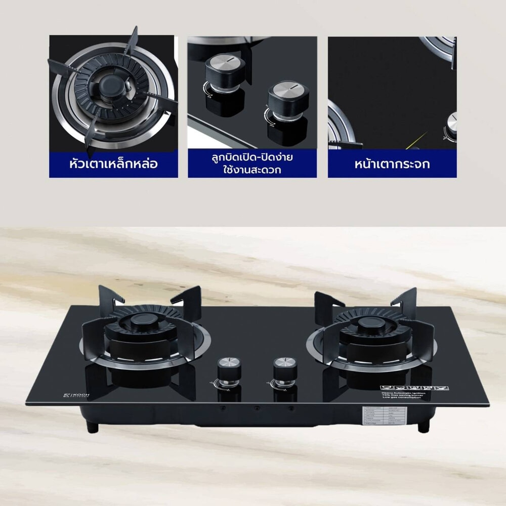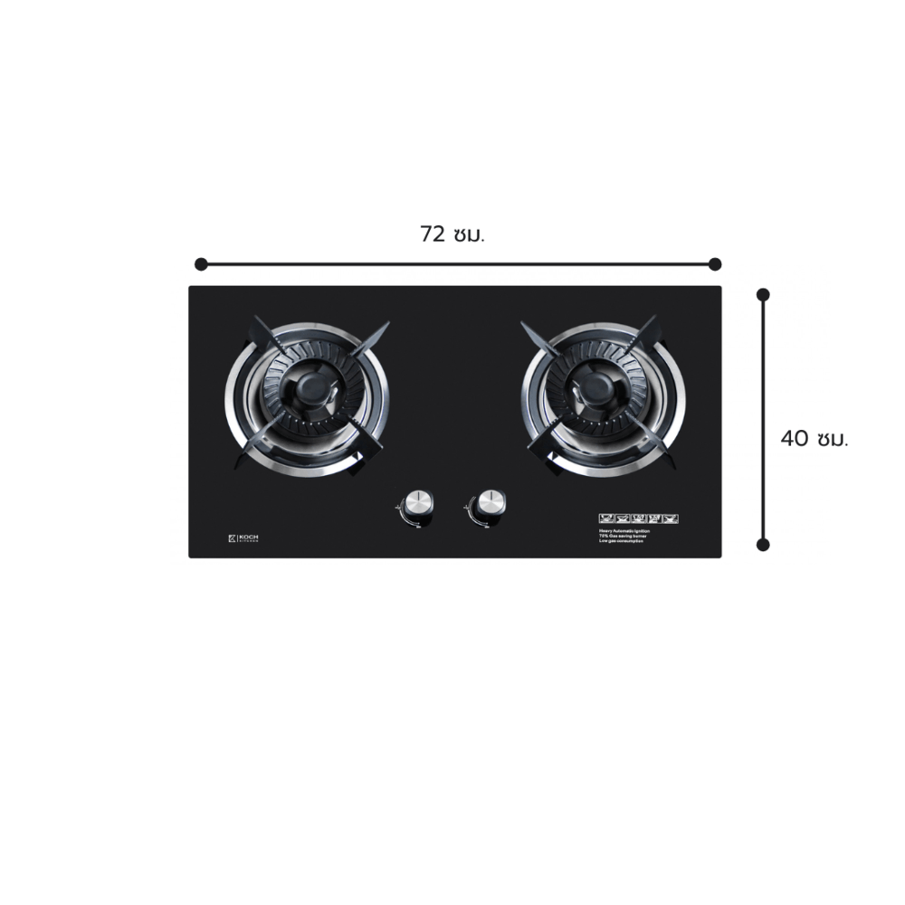 KOCH KITCHEN เตาแก๊สแบบฝังหน้ากระจก 2 หัวเตา NICASIO K-01 สีดำ