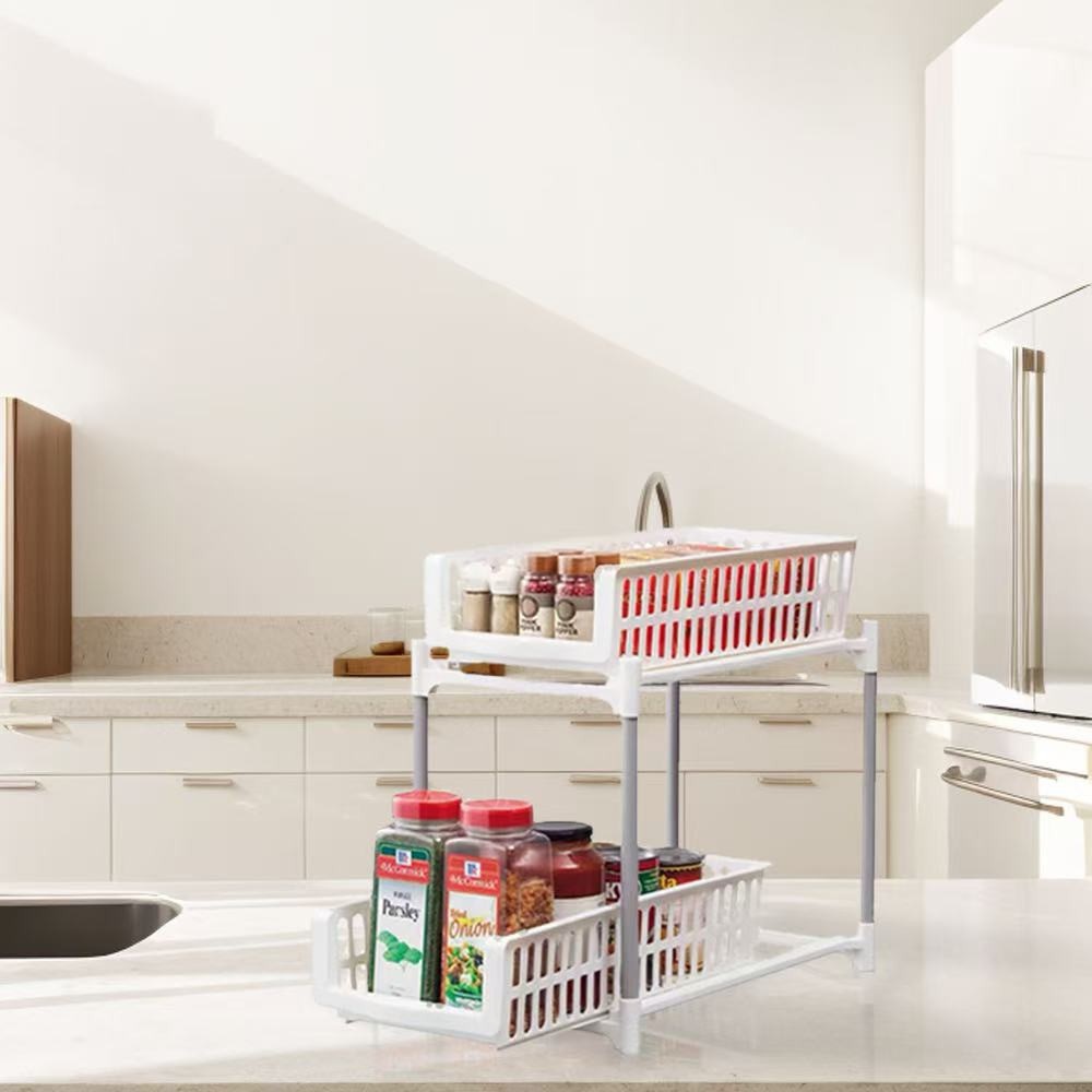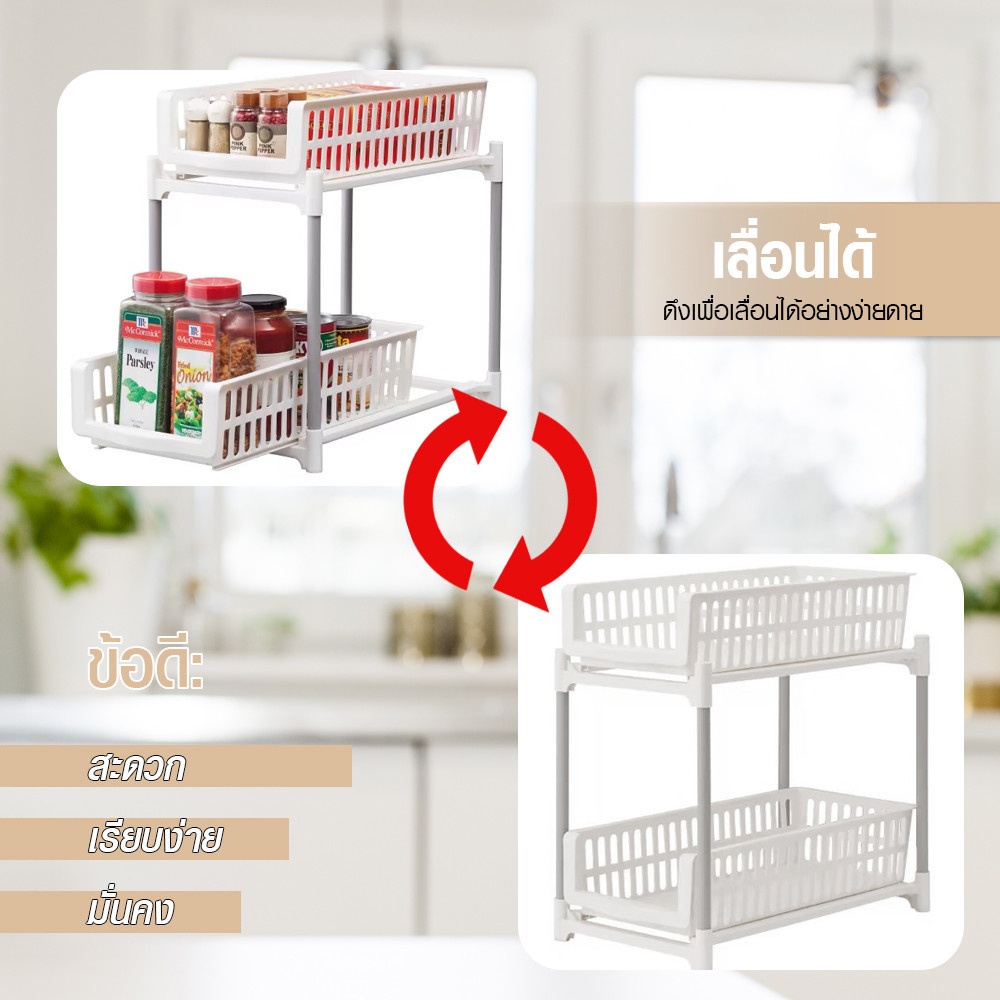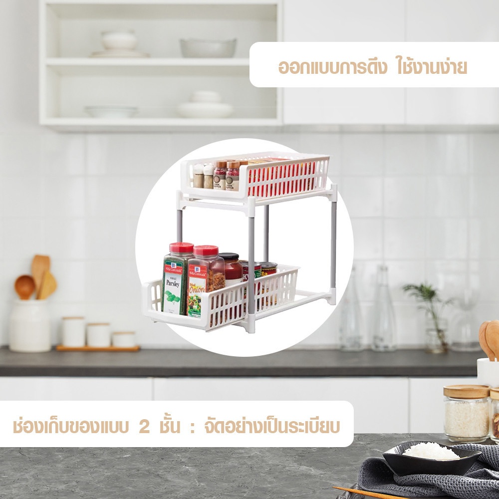 GOME ชั้นวางแบบสองชั้นพร้อมถาดเลื่อน TRIXIE สีขาว