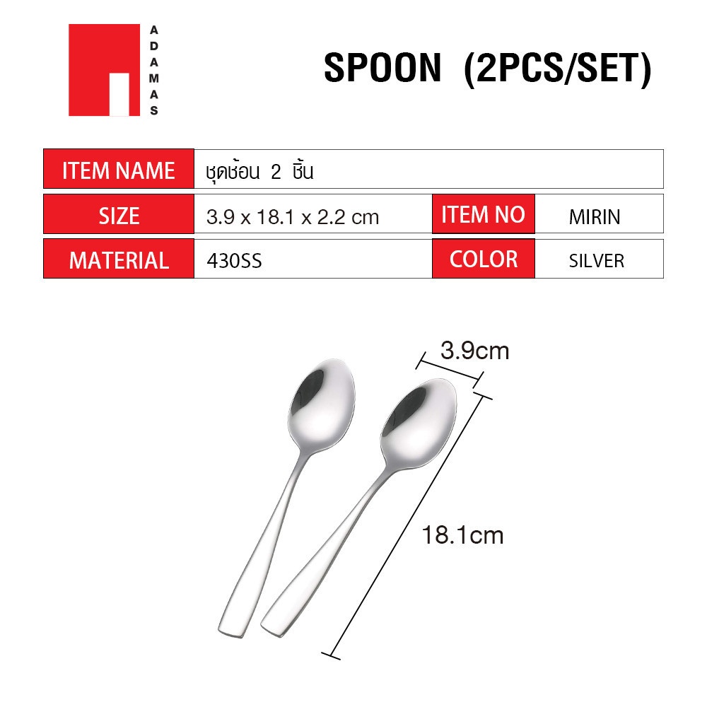 ADAMAS ชุดช้อน 2 ชิ้น MIRIN สีเงิน