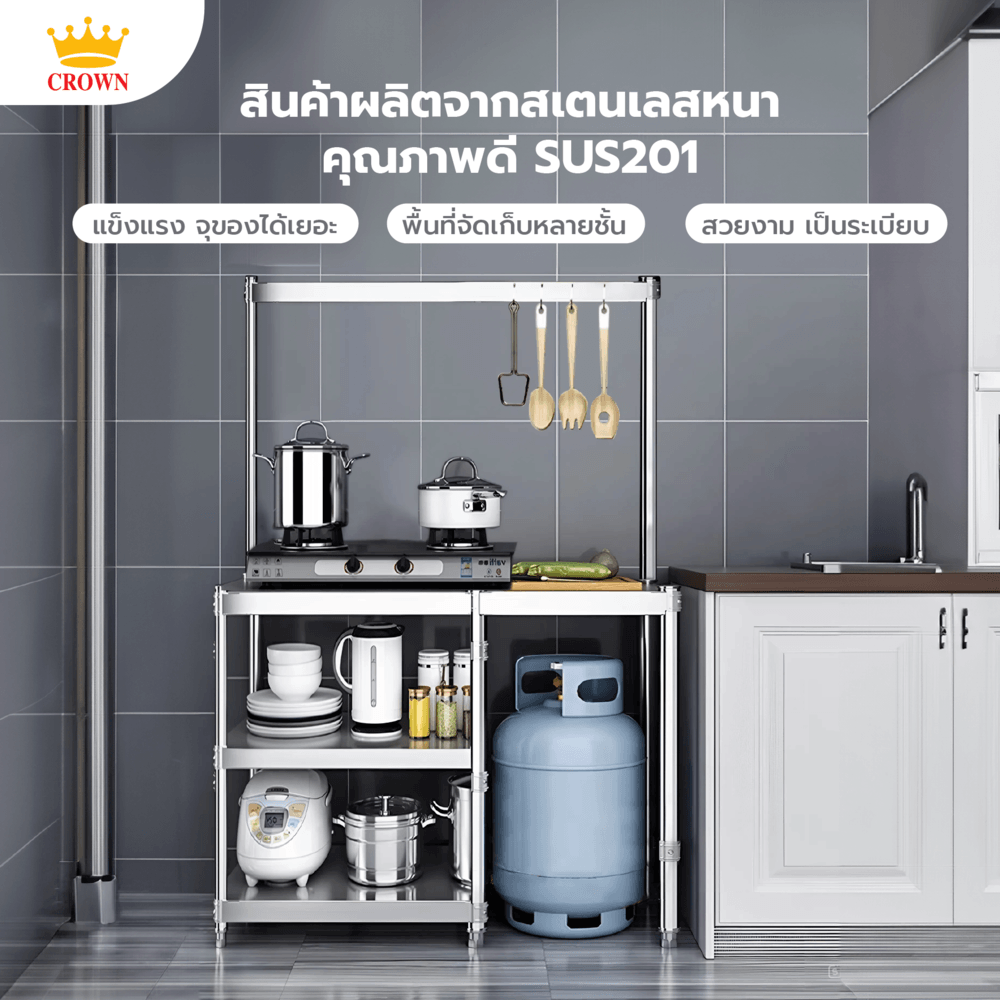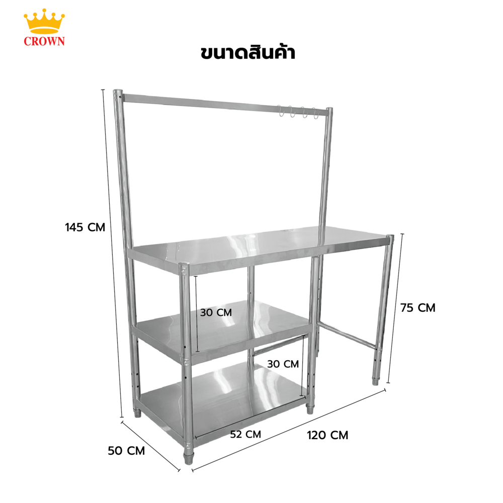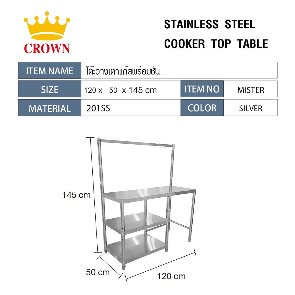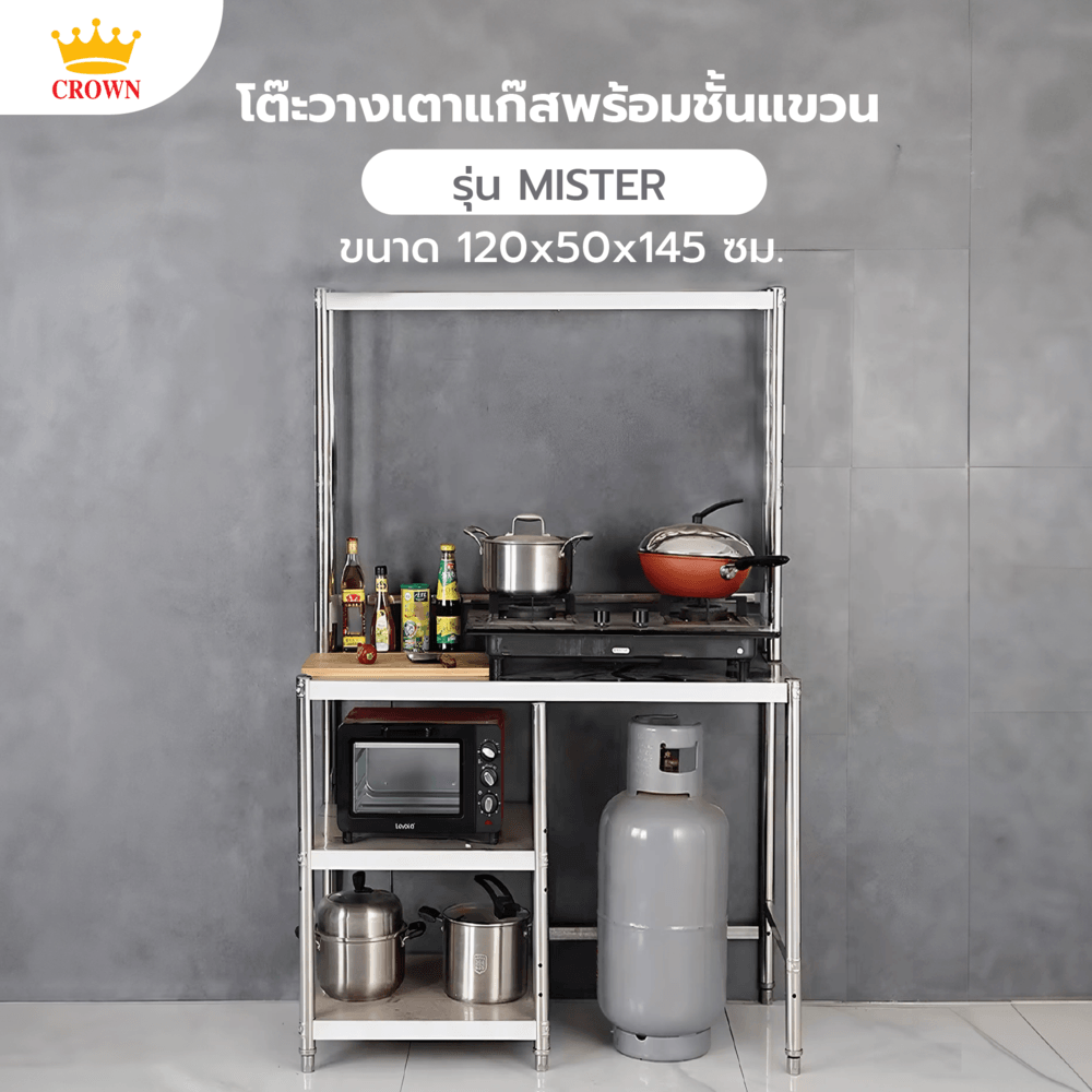 CROWN โต๊ะวางเตาแก๊สพร้อมชั้นแขวน 120x50x145 ซม. MISTER