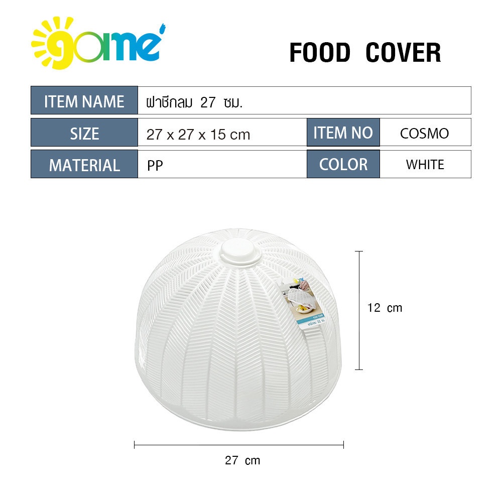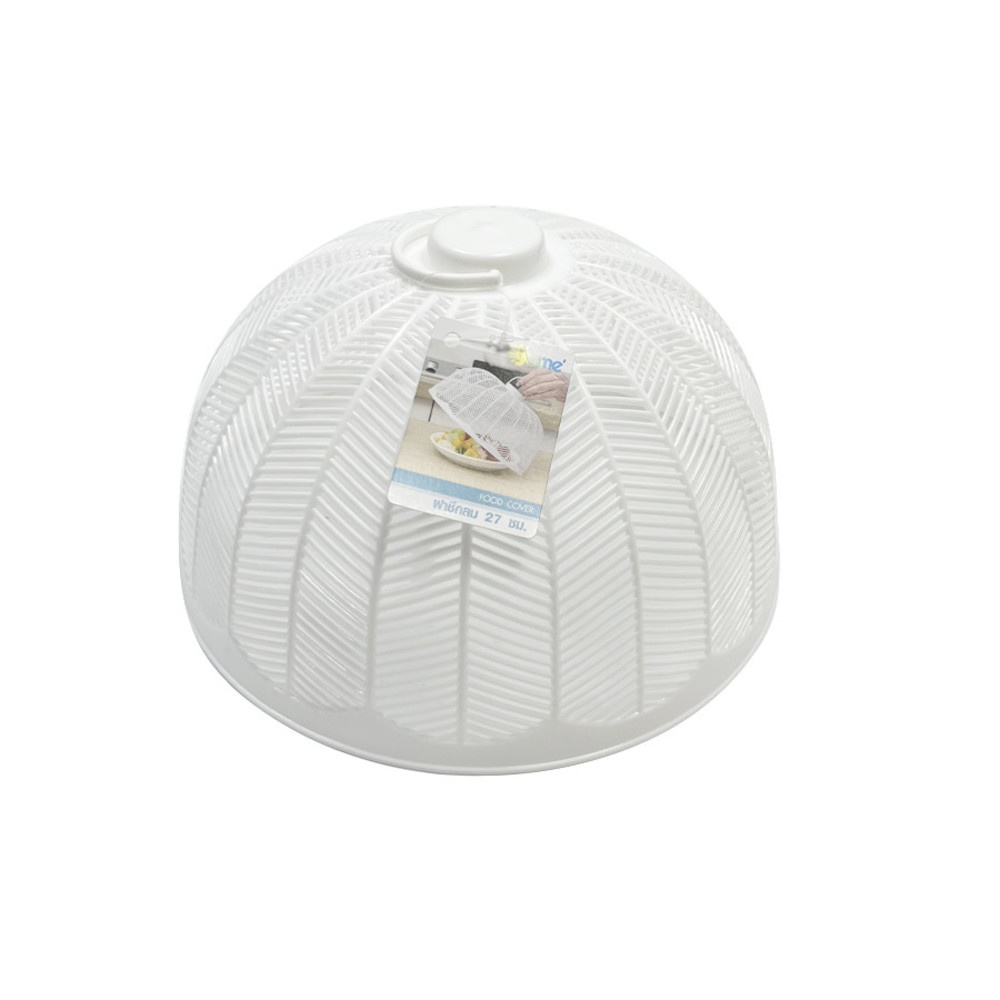 ฝาชีกลม 27 เซนติเมตร สีขาว ผลิตจากพลาสติกคุณภาพดีแข็งแรง ทนทานมีช่องเพื่อระบายอากาศ ด้านบนฝาชี มีหูจับเพื่อให้สามารถหยิบจับ เปิด-ปิดได้อย่างสะดวก