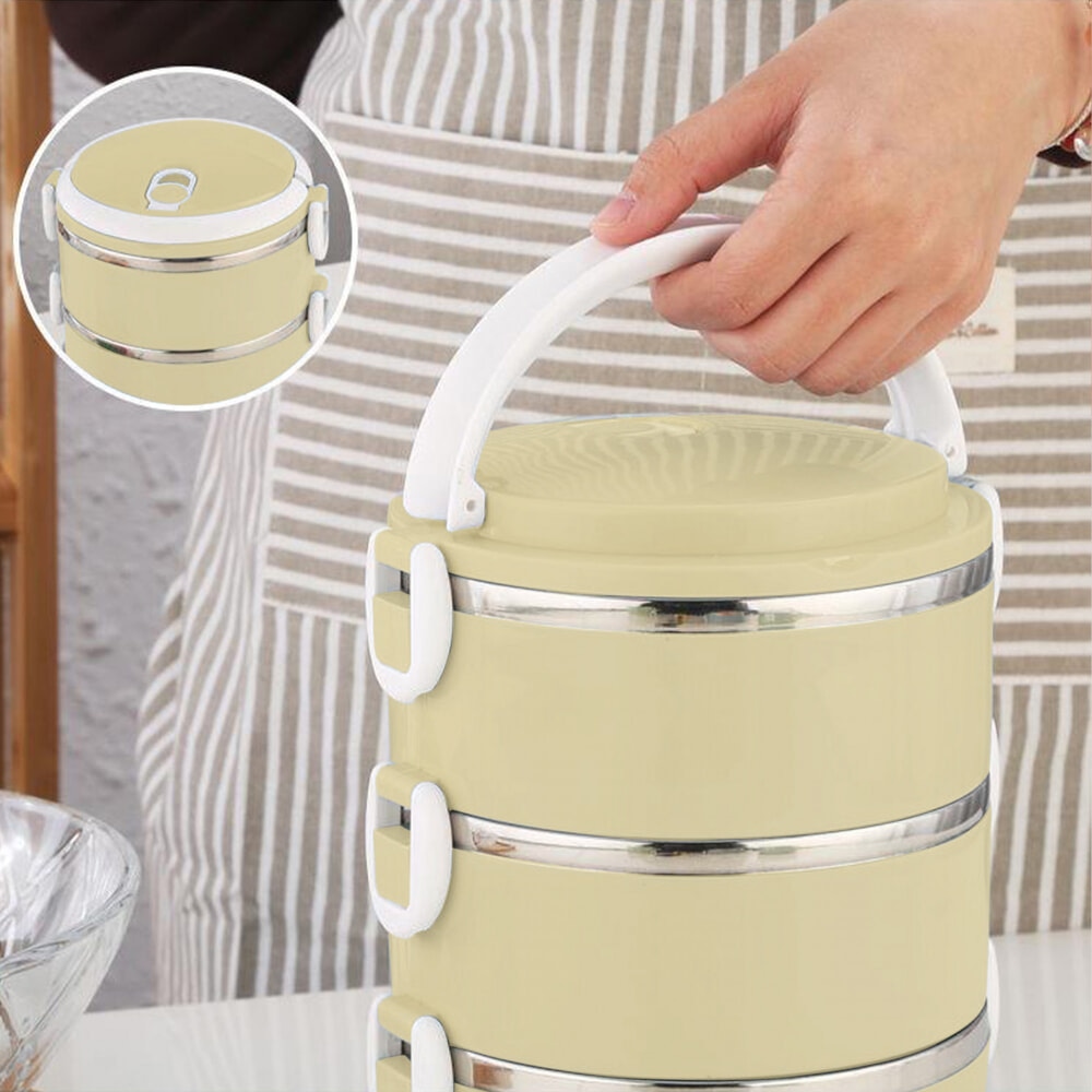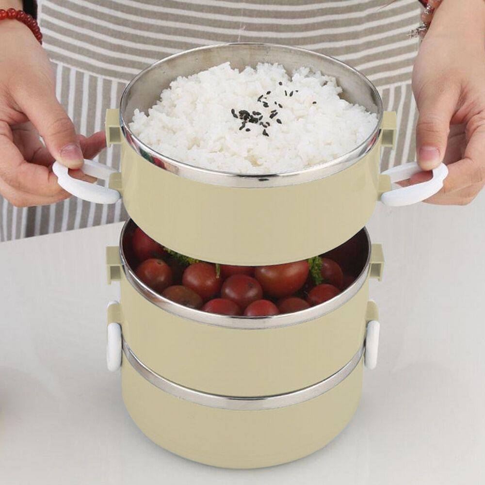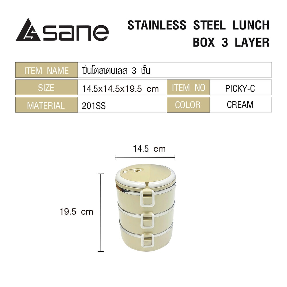 SANE ปิ่นโตสเตนเลส 3 ชั้น PICKY-C สีครีม