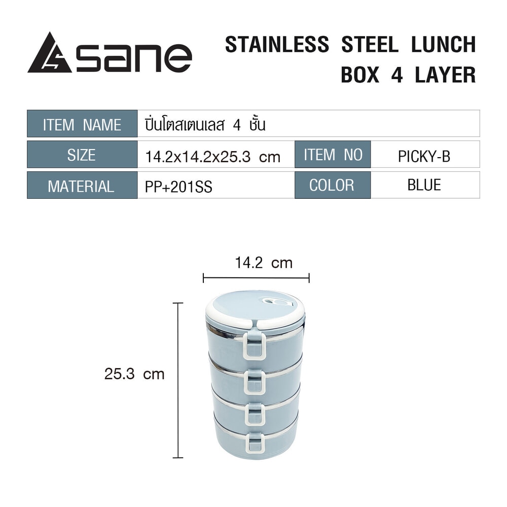 SANE ปิ่นโตสเตนเลส 4 ชั้น PICKY-B สีฟ้า