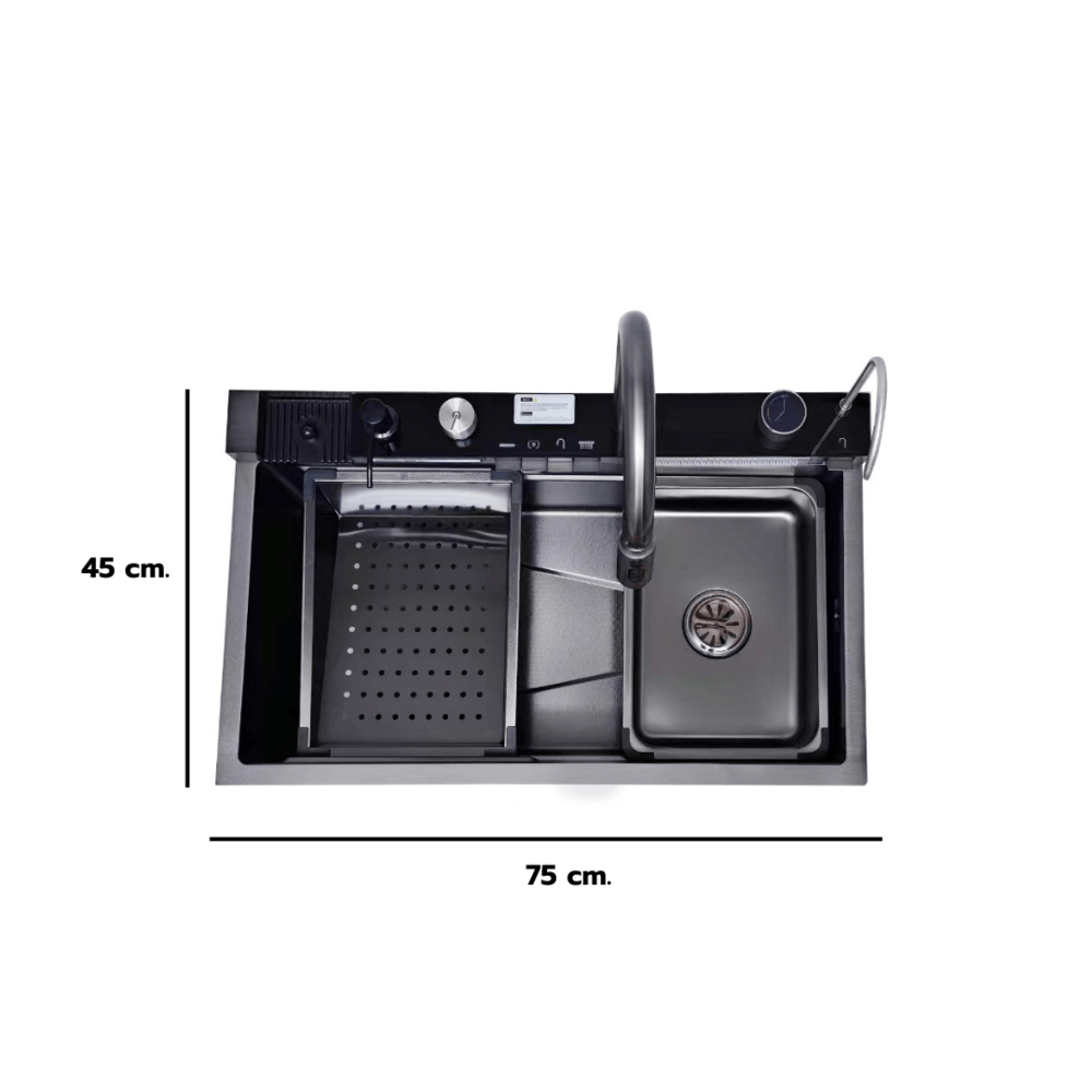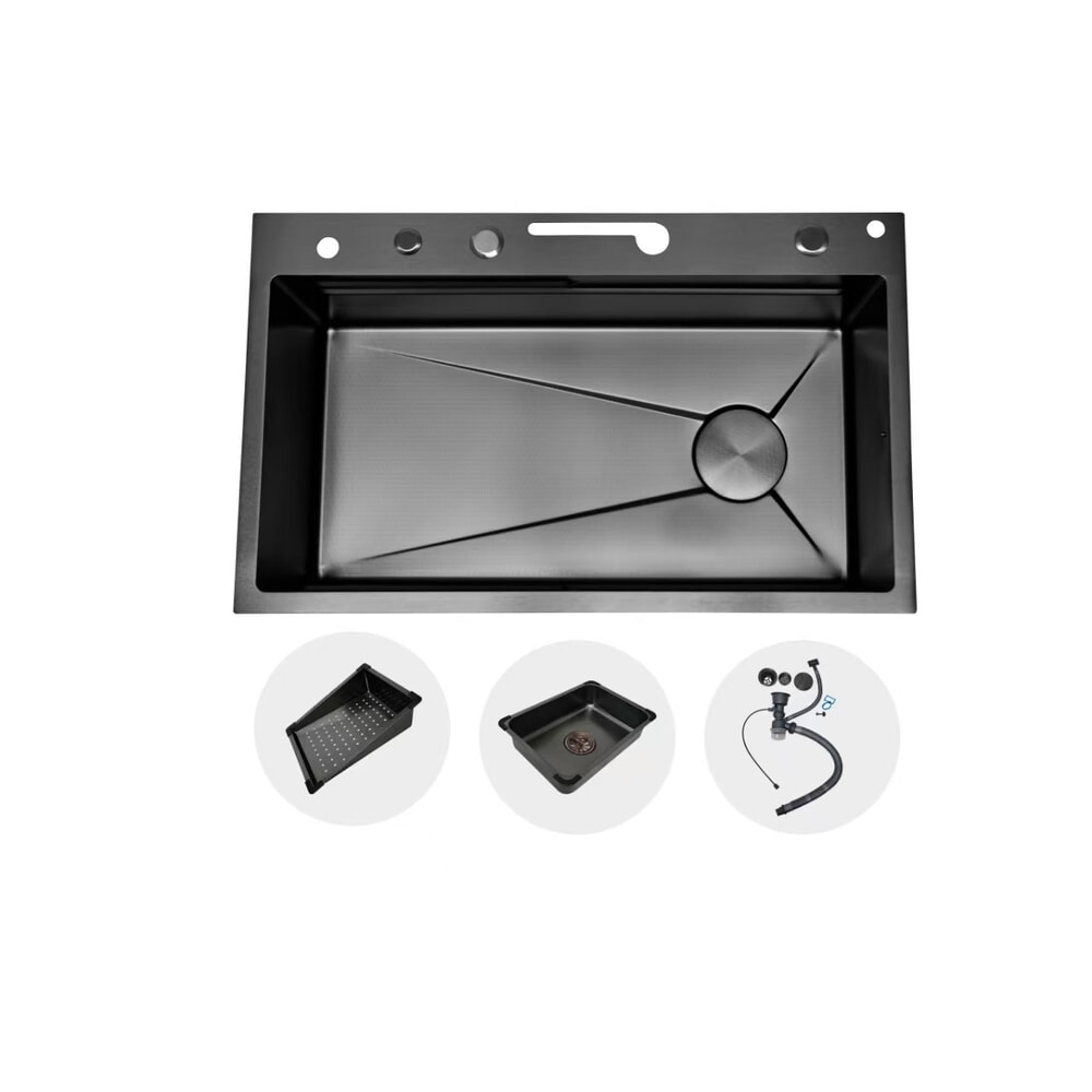 KOCH KITCHEN อ่างล้างจานฝังบน 1 หลุมไม่มีที่พัก SUS304 รุ่น MARTRIX สีดำ ผลิตจากสแตนเลสเกรดพรีเมียม SUS304 ซึ่งมีความทนทานต่อการกัดกร่อน ไม่เป็นสนิมง่าย มั่นใจในความแข็งแรงและอายุการใช้งานยาวนาน เหมาะสำหรับครัวบ้านหรือร้านอาหารขนาดเล็ก ด้วยดีไซน์เรียบหรู ทันสมัย ช่วยเพิ่มความสวยงามให้กับพื้นที่ครัว หลุมเดียวขนาดใหญ่ รองรับภาชนะและอุปกรณ์ครัวได้อย่างสะดวก พื้นผิวผ่านการขัดซาติน (Satin Finish) ลดรอยขีดข่วนและทำความสะอาดง่าย พร้อมแผ่นกันเสียงและลดแรงสั่นสะเทือนขณะใช้งาน ติดตั้งง่าย รองรับทั้งแบบฝังบนและฝังใต้เคาน์เตอร์ เหมาะสำหรับผู้ที่มองหาคุณภาพและฟังก์ชันที่คุ้มค่าในราคาสมเหตุสมผล
