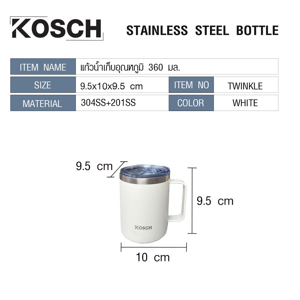 KOSCH แก้วน้ำเก็บอุณหภูมิ 360 มล. TWINKLE สีขาว