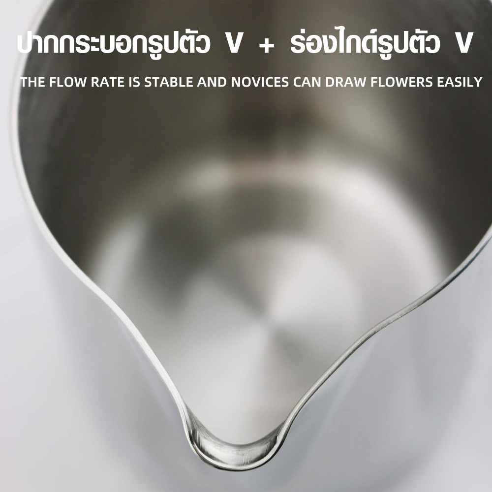 ลักษณะปากเหยือก : ปากเฉียง แหลม เทฟองนมง่าย เหมาะสำหรับลาเต้อาร์ต