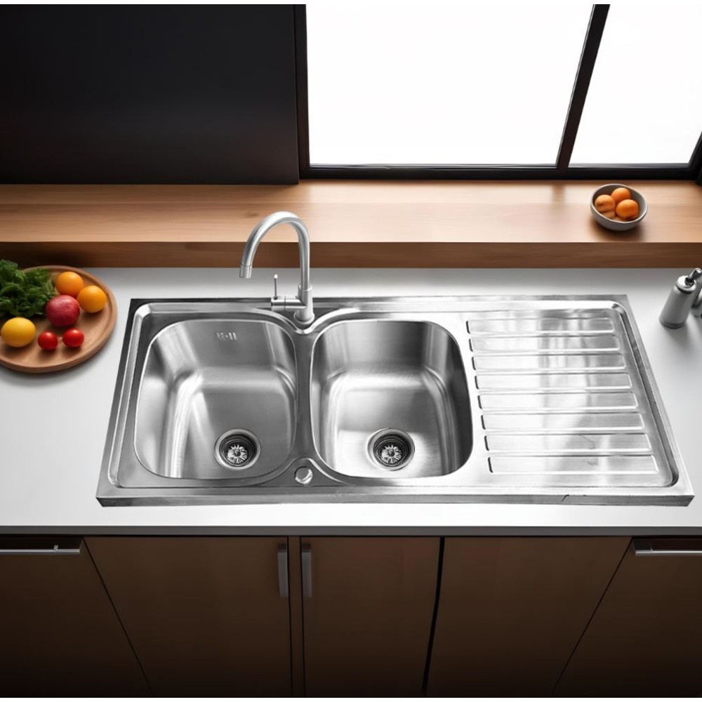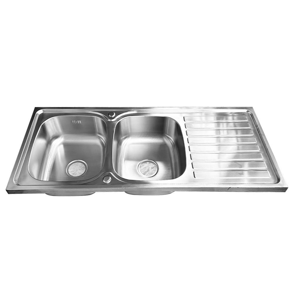 CROWN อ่างล้างจาน 2 หลุมมีที่พักขอบยก 50x120x18.5 ซม. SS12050B