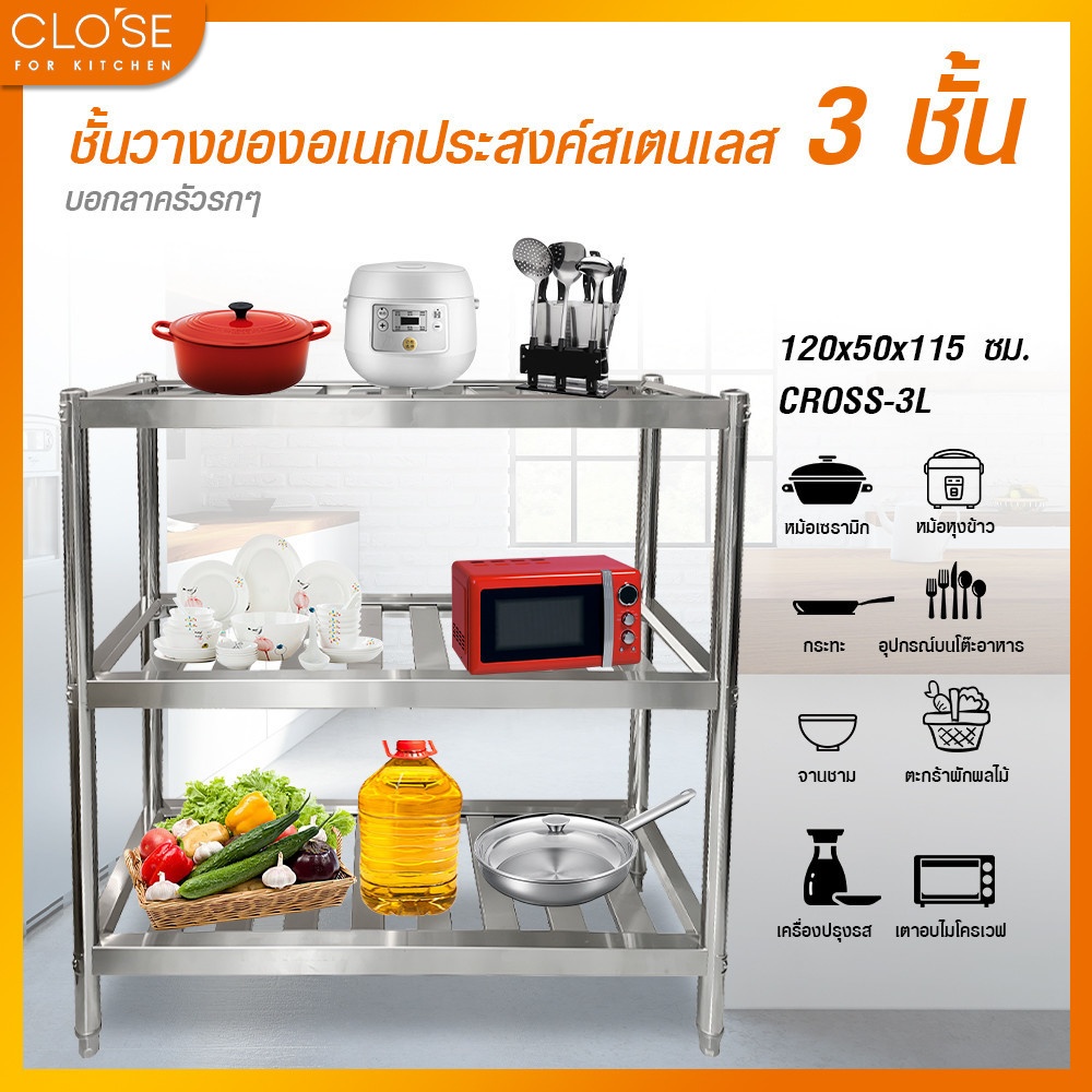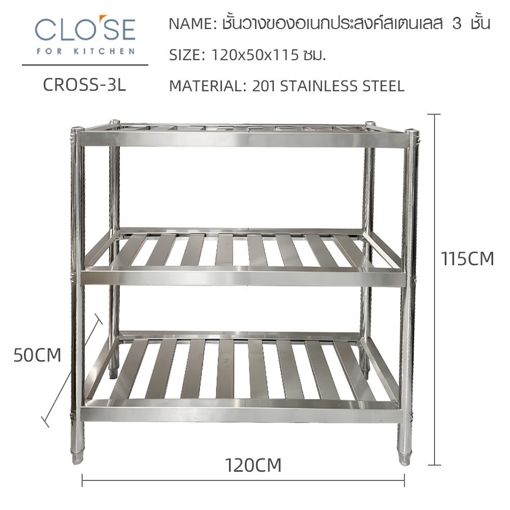 CLOSE ชั้นวางของอเนกประสงค์สเตนเลส 3 ชั้น 120x50x115 ซม. CROSS-3L