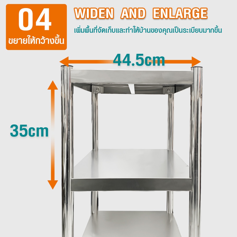 CLOSE ชั้นวางของอเนกประสงค์สเตนเลส 3 ชั้น ขนาด 60x45x80 ซม. TAYA-3L