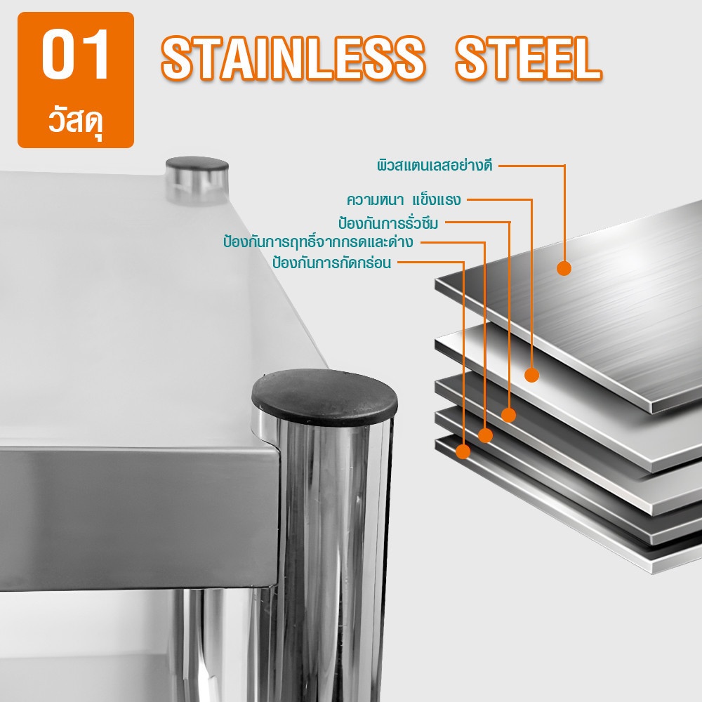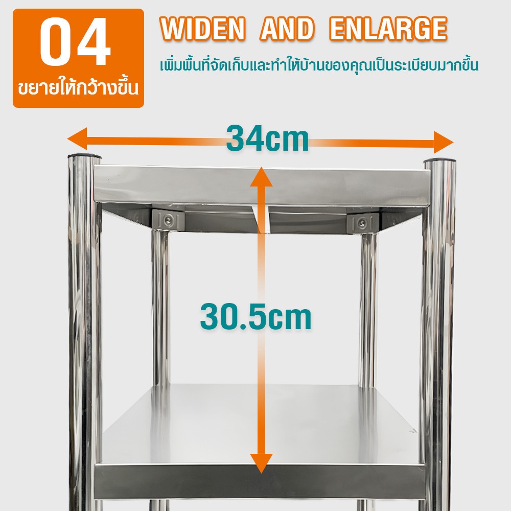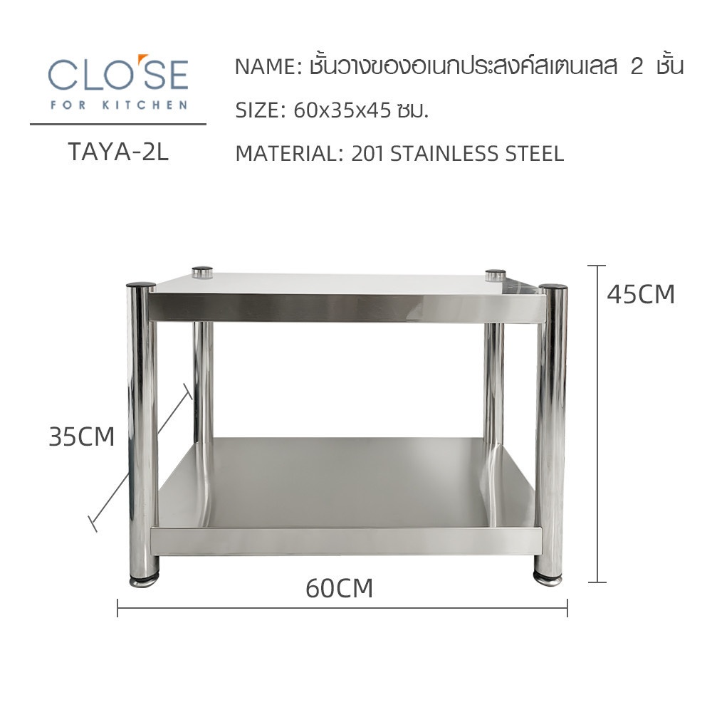 CLOSE ชั้นวางของอเนกประสงค์สเตนเลส 2 ชั้น ขนาด 60x35x45 ซม. TAYA-2L