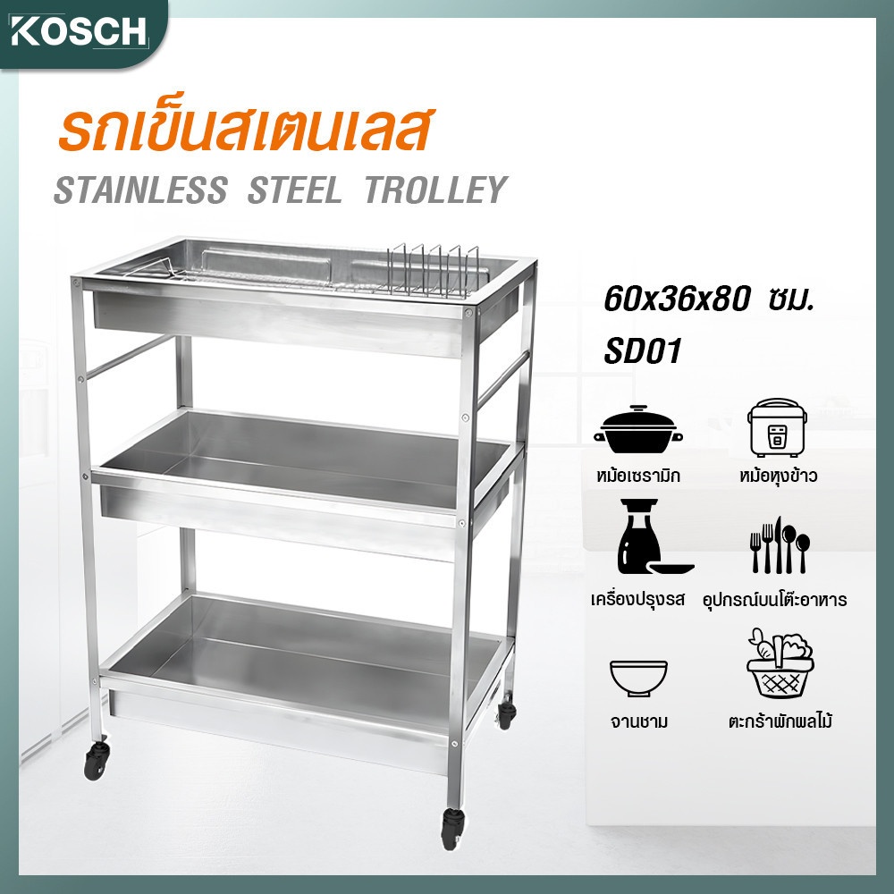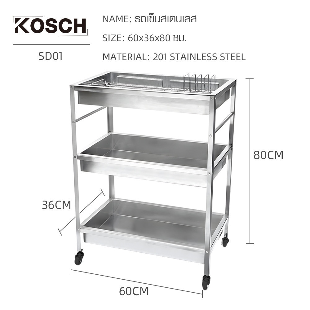 KOSCH รถเข็นสเตนเลส 60x36x80 ซม. SD01