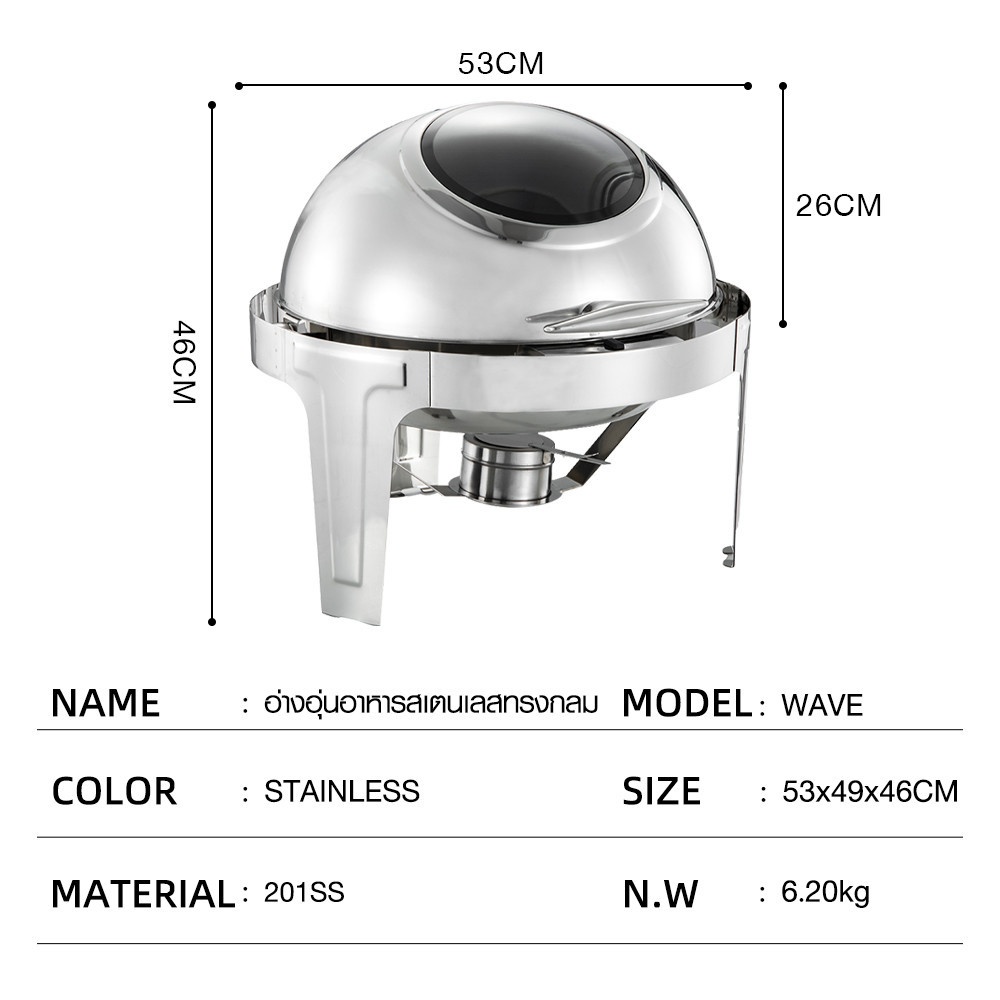 KOCH KITCHEN อ่างอุ่นอาหารสเตนเลสทรงกลม ฝาช่องกระจก 6.5 ลิตร 53×49×46 ซม. WAVE