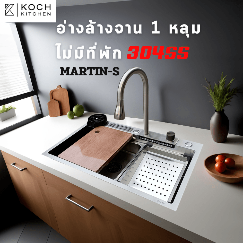 KOCH KITCHEN อ่างล้างจาน 1 หลุมไม่มีที่พัก 304SS 75x46x22 ซม. MARTIN-S