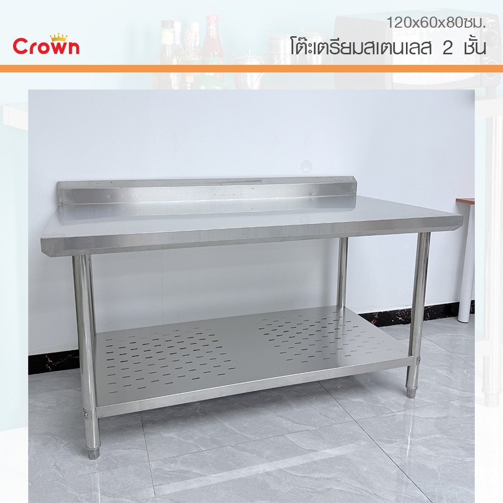 CROWN โต๊ะเตรียมสเตนเลส 2 ชั้น 150x60x80 ซม. NOELLE-SS304