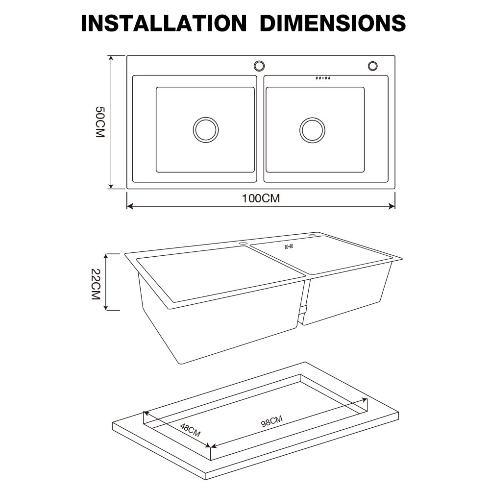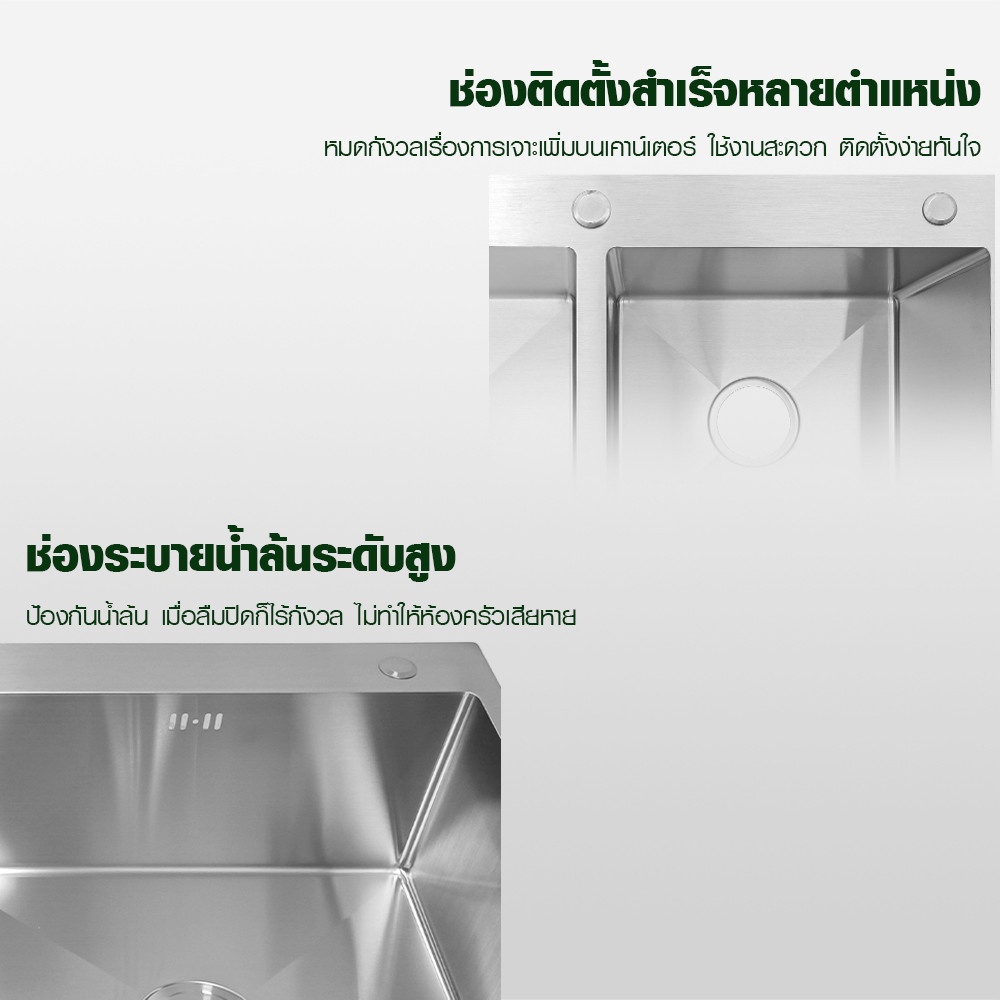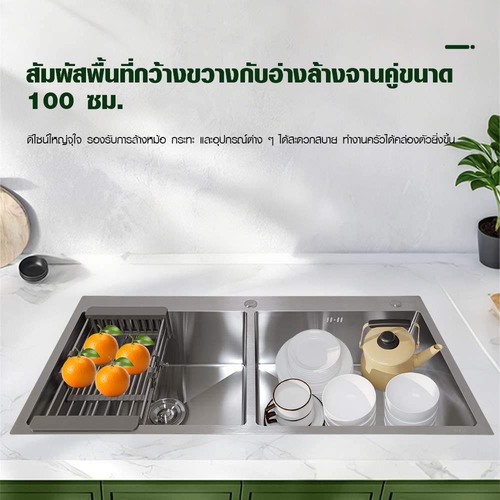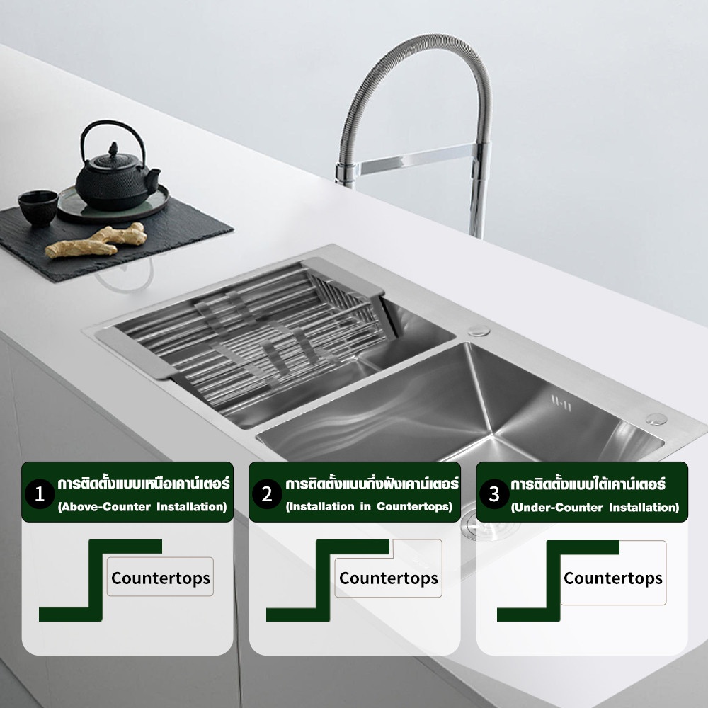 ดีไซน์หลุมลึก 22 ซม. รองรับการล้างจานหรือภาชนะขนาดใหญ่ได้สะดวก ติดตั้งแบบฝังเพื่อความกลมกลืนกับเคาน์เตอร์