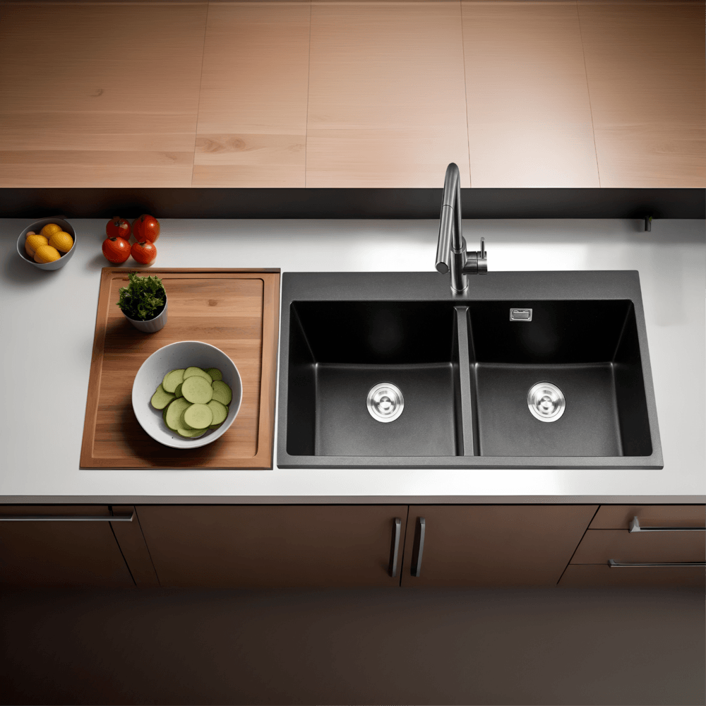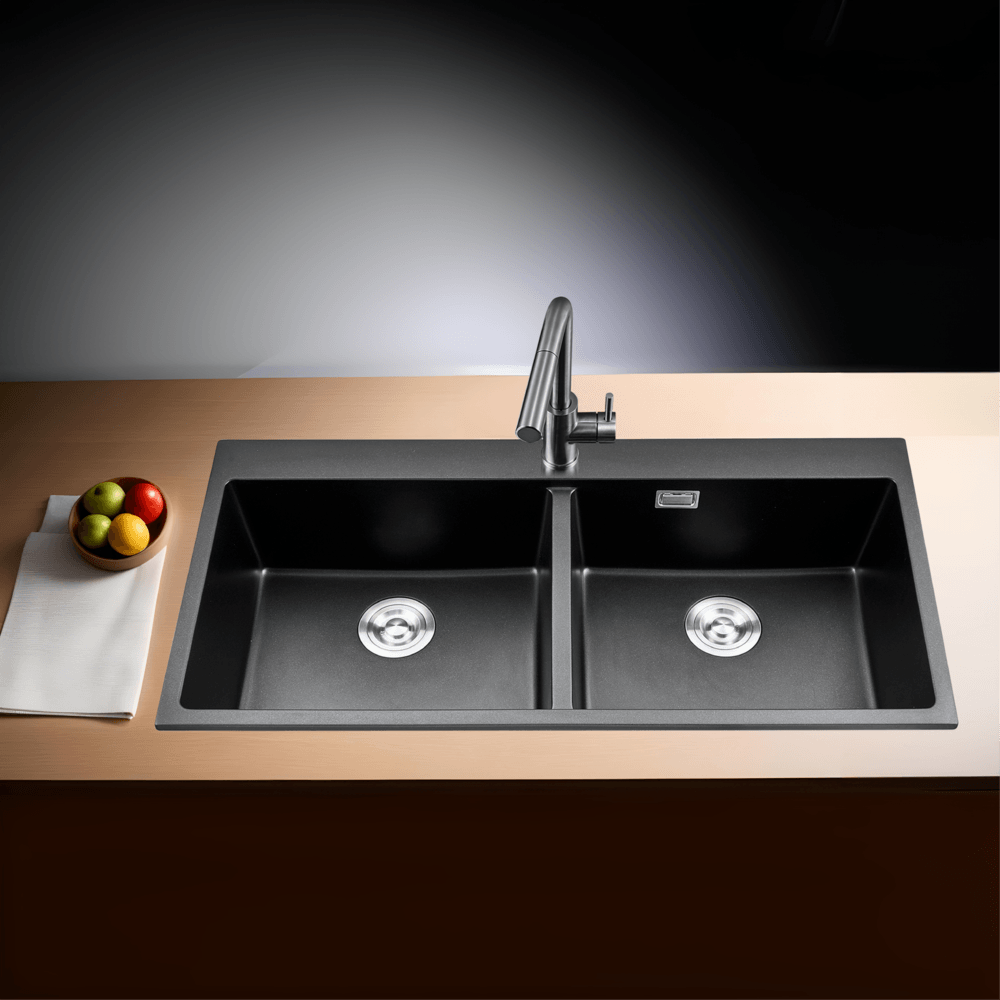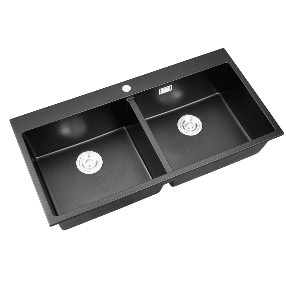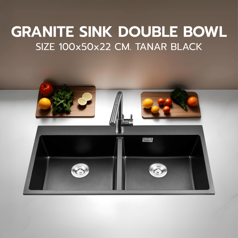 KOCH KITCHEN อ่างล้างจานแกรนิต 2 หลุมไม่มีที่พัก ขนาด 100X50X22 ซม. TANAR สีดำ