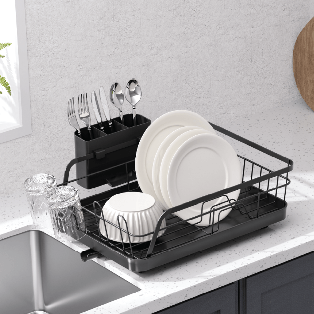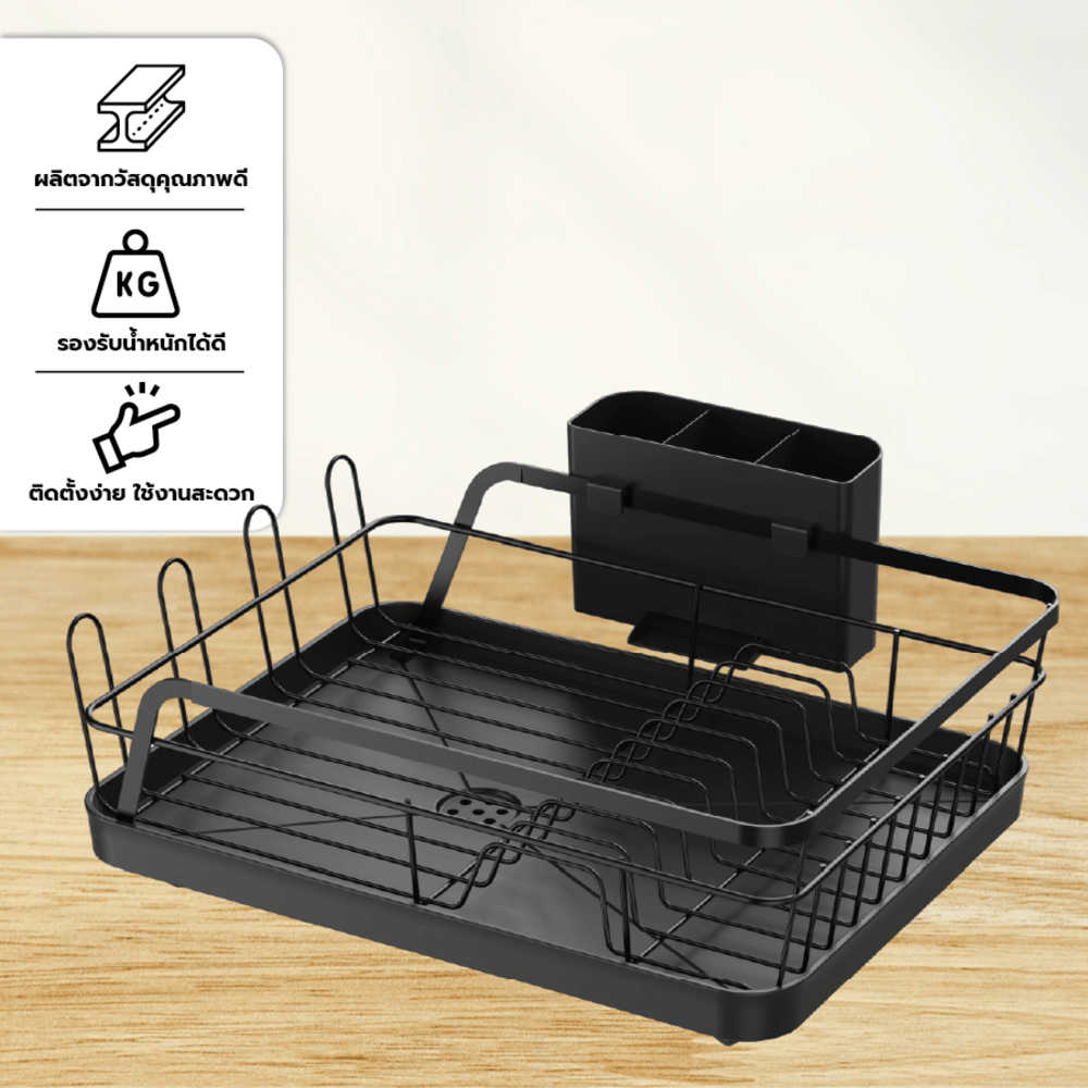 ที่คว่ำจานมีขนาดเหมาะสำหรับคว่ำจาน ชาม และอุปกรณ์ครัวหลังจากล้าง สะดวกในการใช้งาน พร้อมช่องระบายน้ำที่ช่วยให้น้ำไม่ขังและแห้งเร็ว ผลิตจากวัสดุทนทาน รองรับน้ำหนักได้ดี และสีดำที่ดูทันสมัย สามารถเข้ากับการตกแต่งครัวได้ง่าย ช่วยประหยัดพื้นที่และทำให้การจัดเก็บจานชามเป็นระเบียบมากขึ้น