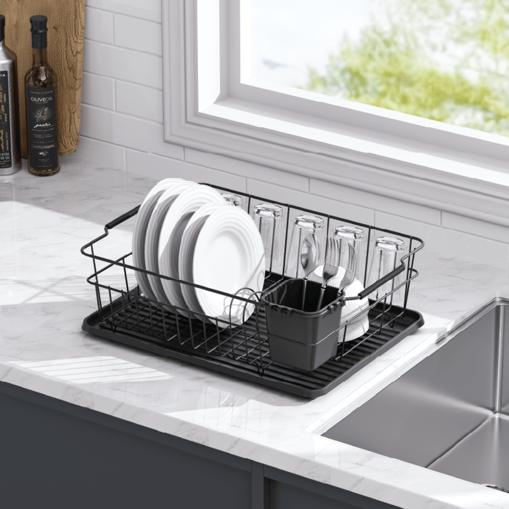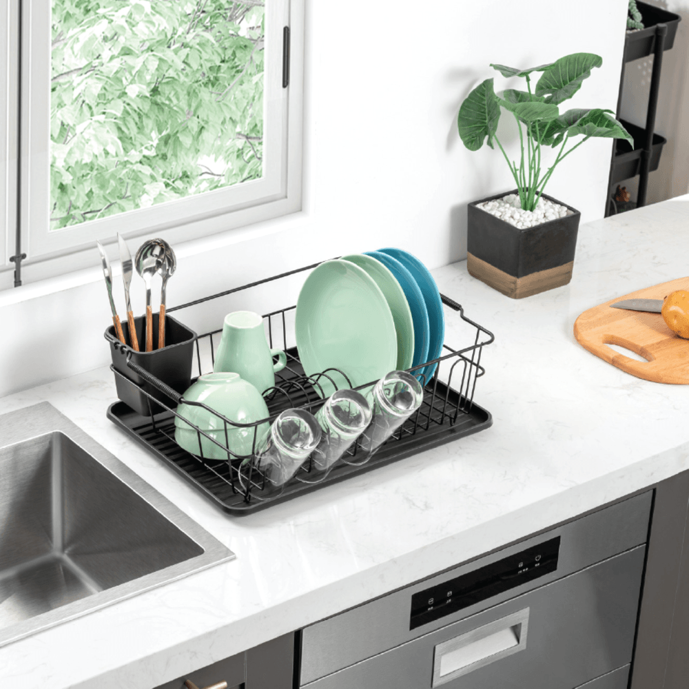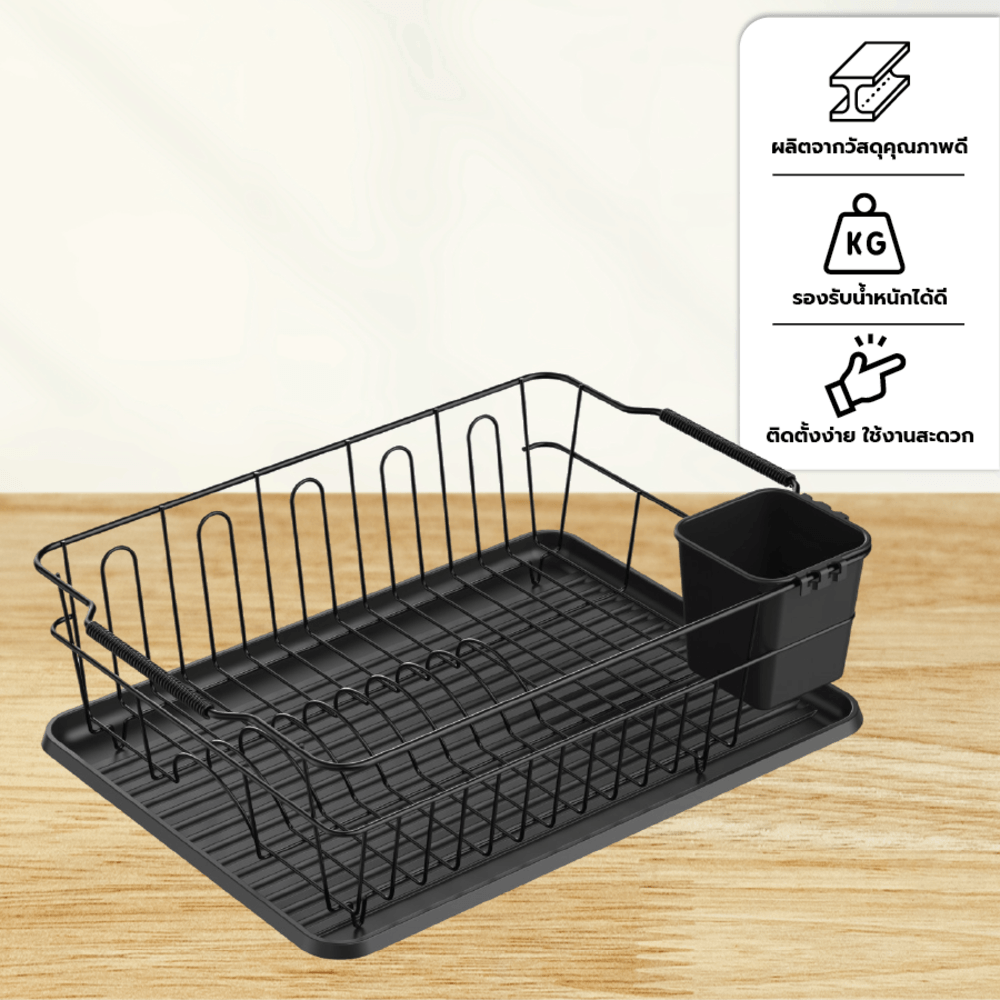 ที่คว่ำจานมีขนาดเหมาะสำหรับคว่ำจาน ชาม และอุปกรณ์ครัวหลังจากล้าง สะดวกในการใช้งาน พร้อมช่องระบายน้ำที่ช่วยให้น้ำไม่ขังและแห้งเร็ว ผลิตจากวัสดุทนทาน รองรับน้ำหนักได้ดี และสีดำที่ดูทันสมัย สามารถเข้ากับการตกแต่งครัวได้ง่าย ช่วยประหยัดพื้นที่และทำให้การจัดเก็บจานชามเป็นระเบียบมากขึ้น