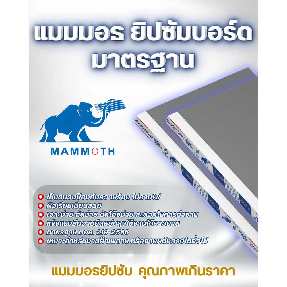 | รุ่น | MAMMOTH Gypsum Board, Standard Model, Beveled Edge, 0.9x120x240 cm. |