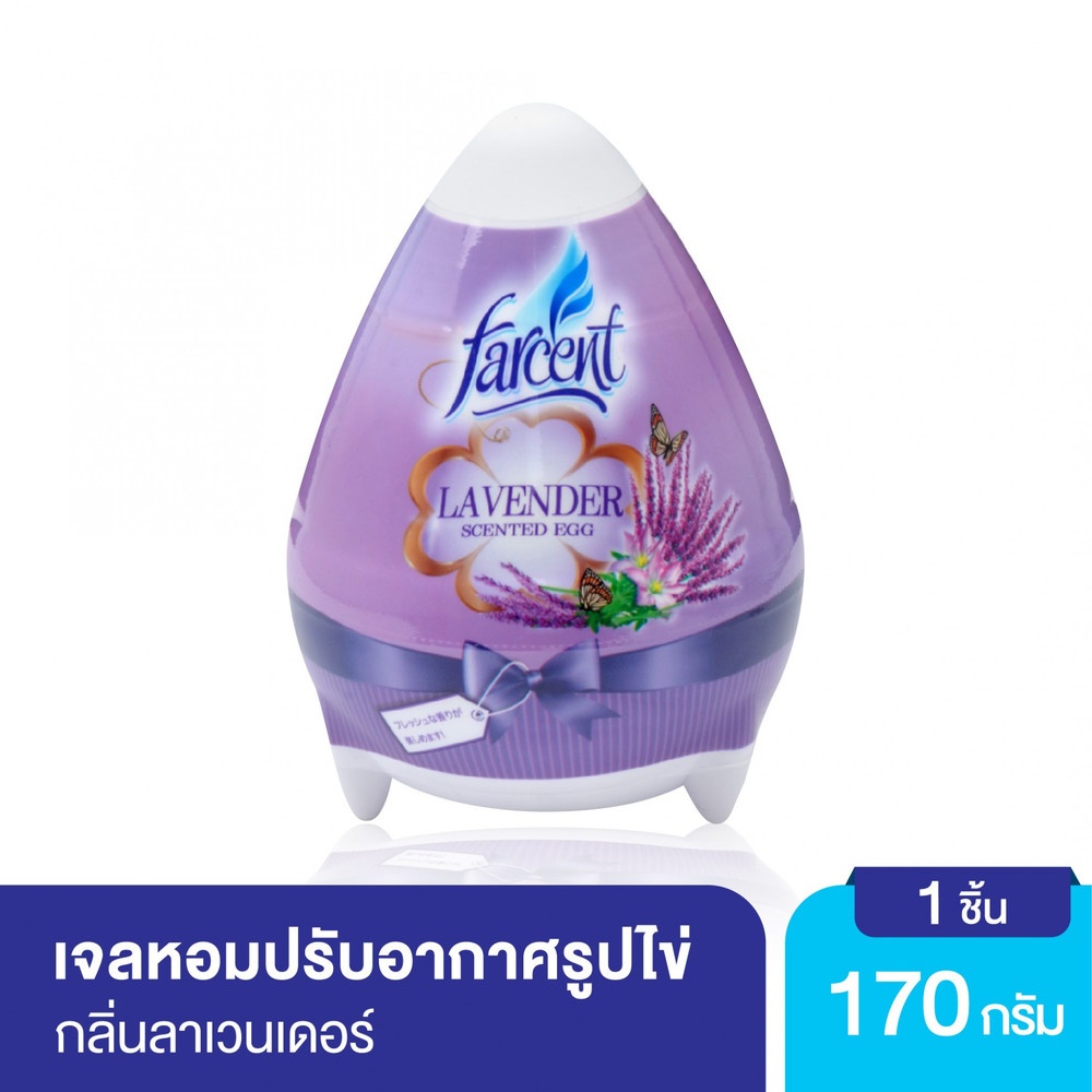 เจลน้ำหอมรูปไข่ FARCENT กลิ่นลาเวนเดอร์ ให้ความหอมสดชื่น ช่วยสร้างบรรยากาศภายในบ้านให้หอมหวน ให้ความหอมยาวนาน และกระจายความหอมได้รอบทิศทาง ขจัดกลิ่นอับอันไม่พึงประสงค์ได้อย่างหมดจด บรรจุภัณฑ์ดีไซน์น่ารัก กะทัดรัด