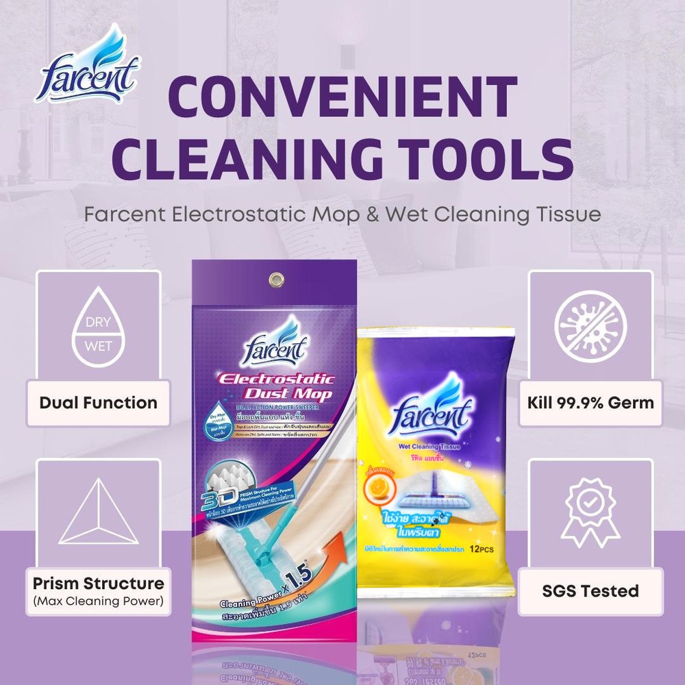 ทำความสะอาดพื้นอย่างง่ายดาย ขจัดคราบสิ่งสกปรกได้อย่างหมดจดในพริบตา ด้วยอะไหล่ม็อป จาก FARCENT ปัญหาสำหรับพ่อบ้าน แม่บ้าน เชื่อเลยว่าหลายคนเบื่อกับการที่ต้องคอยทำความสะอาดพื้น หรือสิ่งสกปรกต่าง ๆ ด้วยขั้นตอนที่มากมาย เช่น การเลือกซื้อน้ำยาทำความสะอาด หรือการซักล้างผ้าถูพื้น แต่ด้วยนวัตกรรมอะไหล่ม็อปแบบสำเร็จรูปพร้อมใช้งานจะอำนวยความสะดวกในการทำความสะอาดให้เป็นเรื่องง่าย เพียงแค่ฉีกซอง ติดตั้งกับไม้ม็อป หรือจะใช้เช็ดถูด้วยมือ หลังจากใช้งานเสร็จก็ทิ้ง เท่านี้การทำความสะอาดก็ไม่ใช่เรื่องที่แสนน่าเบื่อ และมากขั้นตอน
