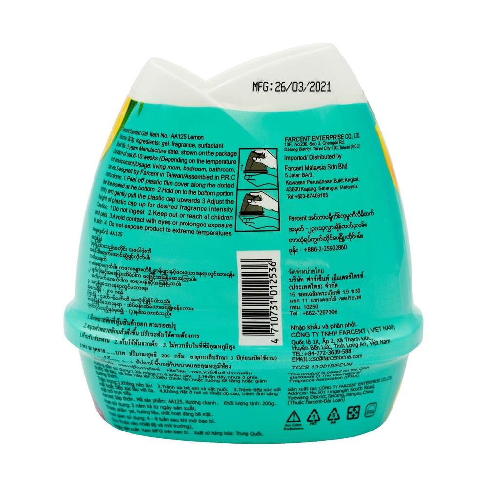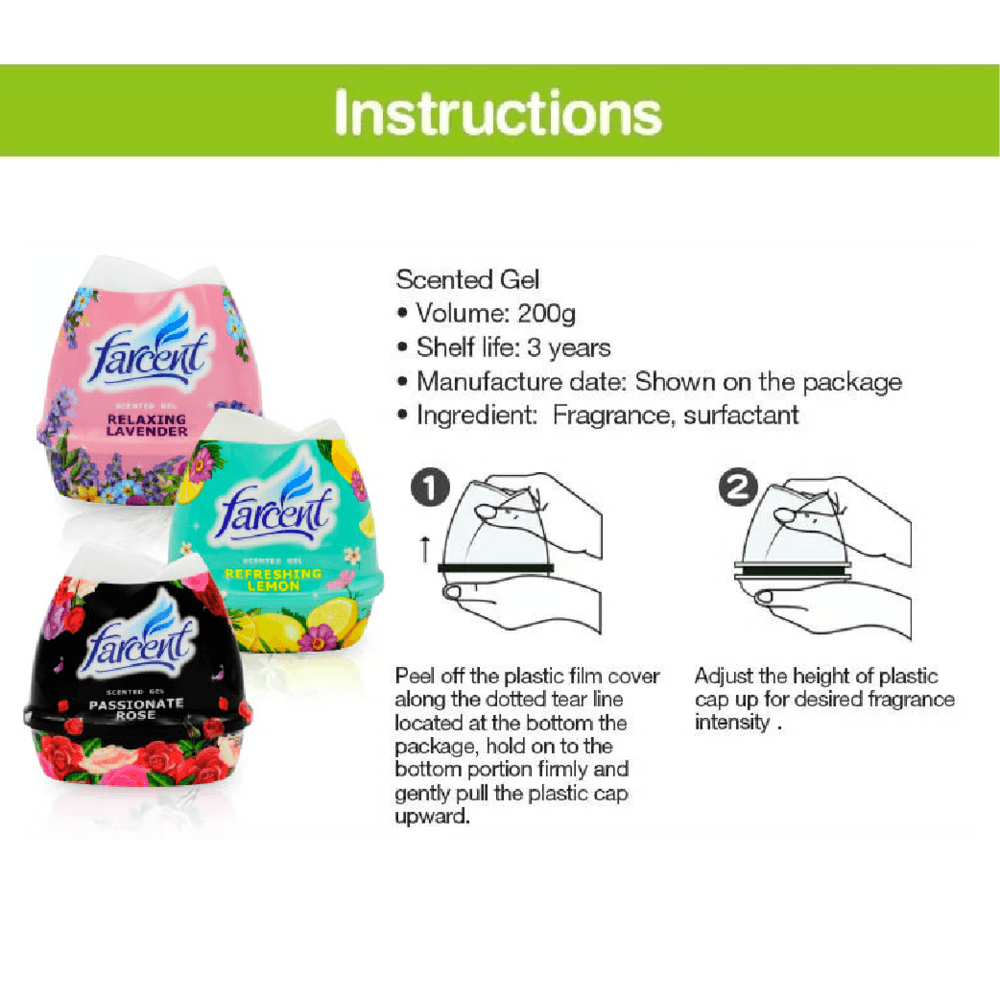 เจลปรับอากาศ FARCENT กลิ่น Refreshing lemon ให้กลิ่นหอมสดชื่นจากธรรมชาติ สร้างความผ่อนคลายให้บริเวณที่ต้องการ สามารถขจัดกลิ่นไม่พึงประสงค์ และกระจายความหอมได้รอบทิศทาง และหอมสดชื่นยาวนานถึง 60 วัน พร้อมโอบล้อมคุณไว้ด้วยกลิ่นหอมผ่อนคลายที่ช่วยสร้างบรรยากาศได้อย่างรื่นรมย์ราวกับอยู่ท่ามกลางธรรมชาติ เหมาะกับการจัดวางในทุกพื้นที่ใช้งานไม่ว่าจะเป็นห้องน้ำ, ห้องนั่งเล่น หรือห้องนอนของคุณ