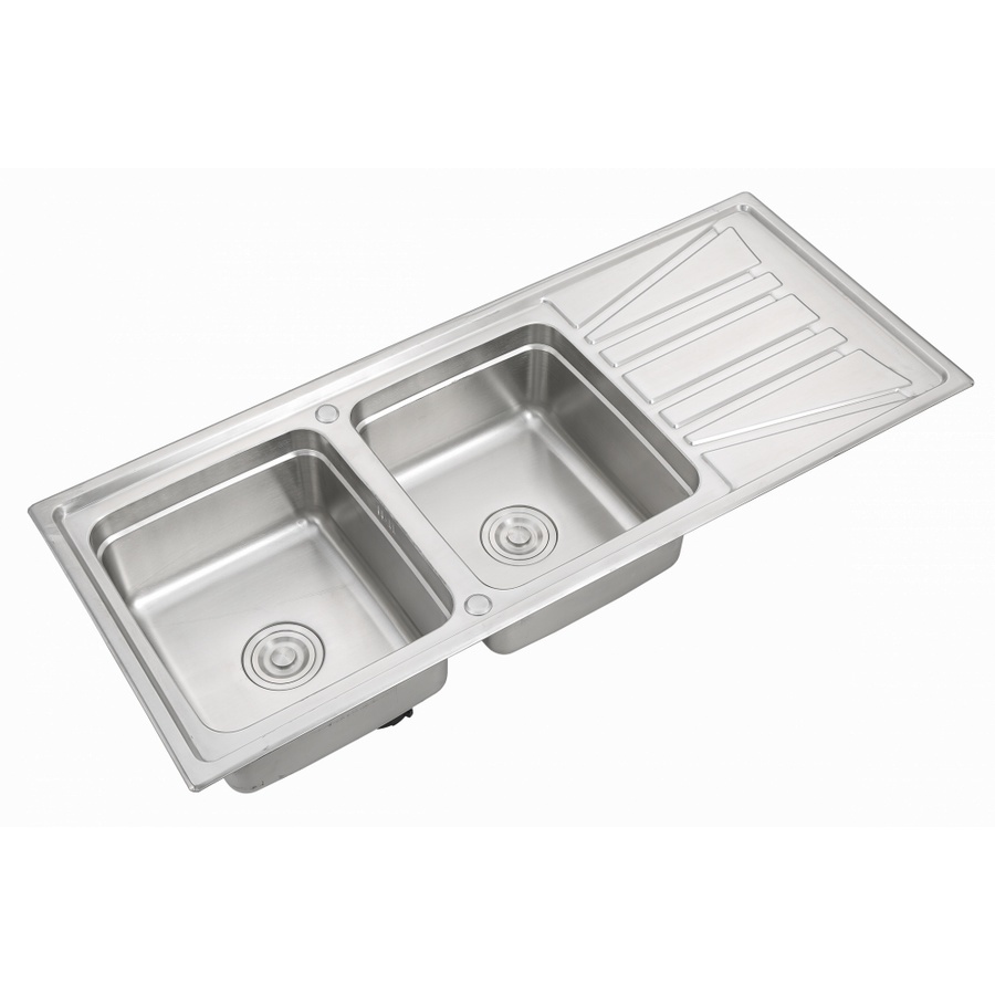 CROWN อ่างล้างจาน 2 หลุมมีที่พัก WDA12050C 120x50x21 ซม.