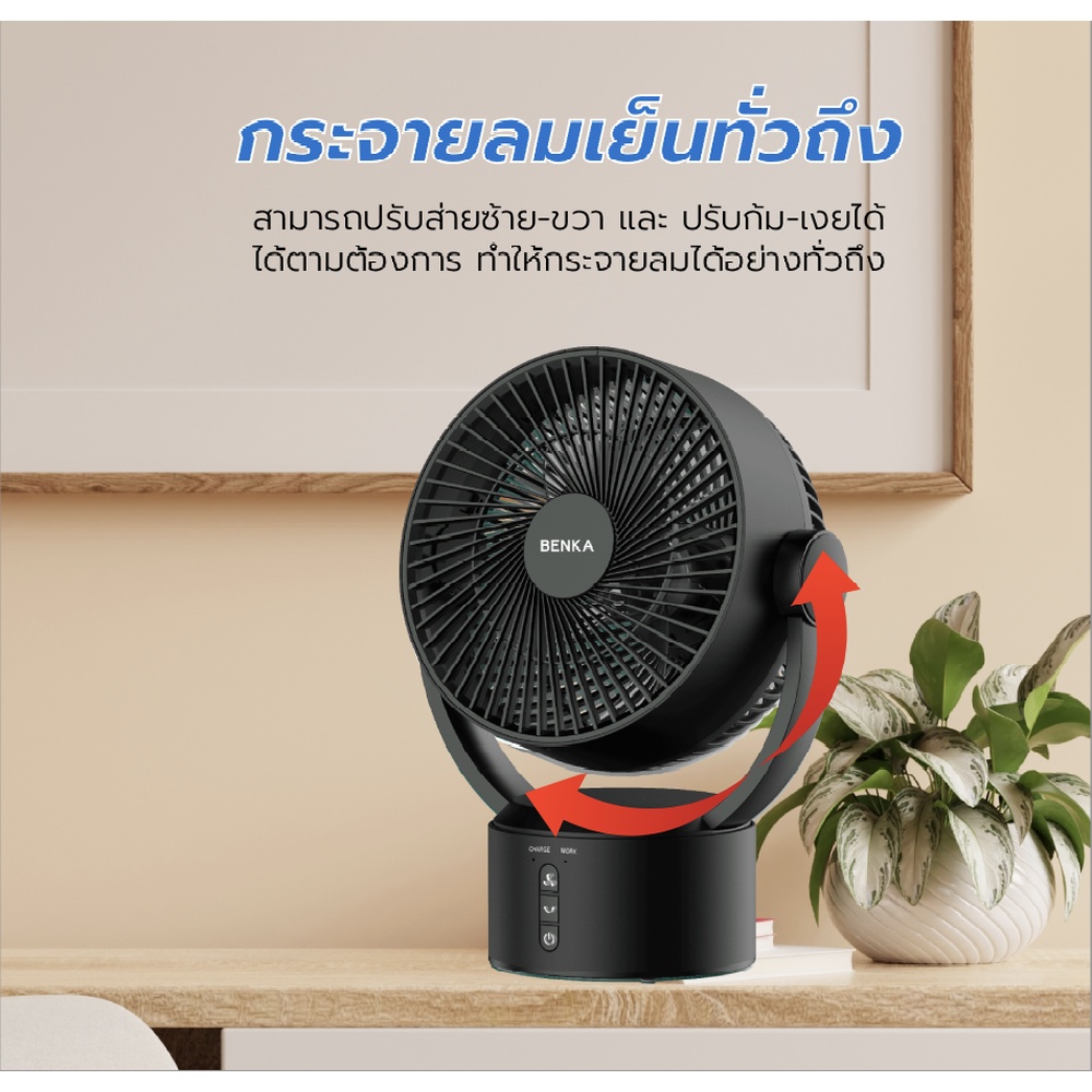 พัดลม BENKA รุ่น KN-L2829 ขนาด 9 นิ้ว สีกำ มาพร้อมฟีเจอร์ที่ใช้งานได้หลากหลาย เหมาะสำหรับการพกพาไปใช้ในทุกสถานที่ ทั้งที่บ้าน ที่ทำงาน หรือระหว่างเดินทาง ด้วยดีไซน์ทันสมัยและขนาดกะทัดรัด น้ำหนักเบา ใช้งานสะดวกและง่าย ใช้พลังงานจากแบตเตอรี่ลิเธียมไอออน 7.4V ความจุ 3600mAh