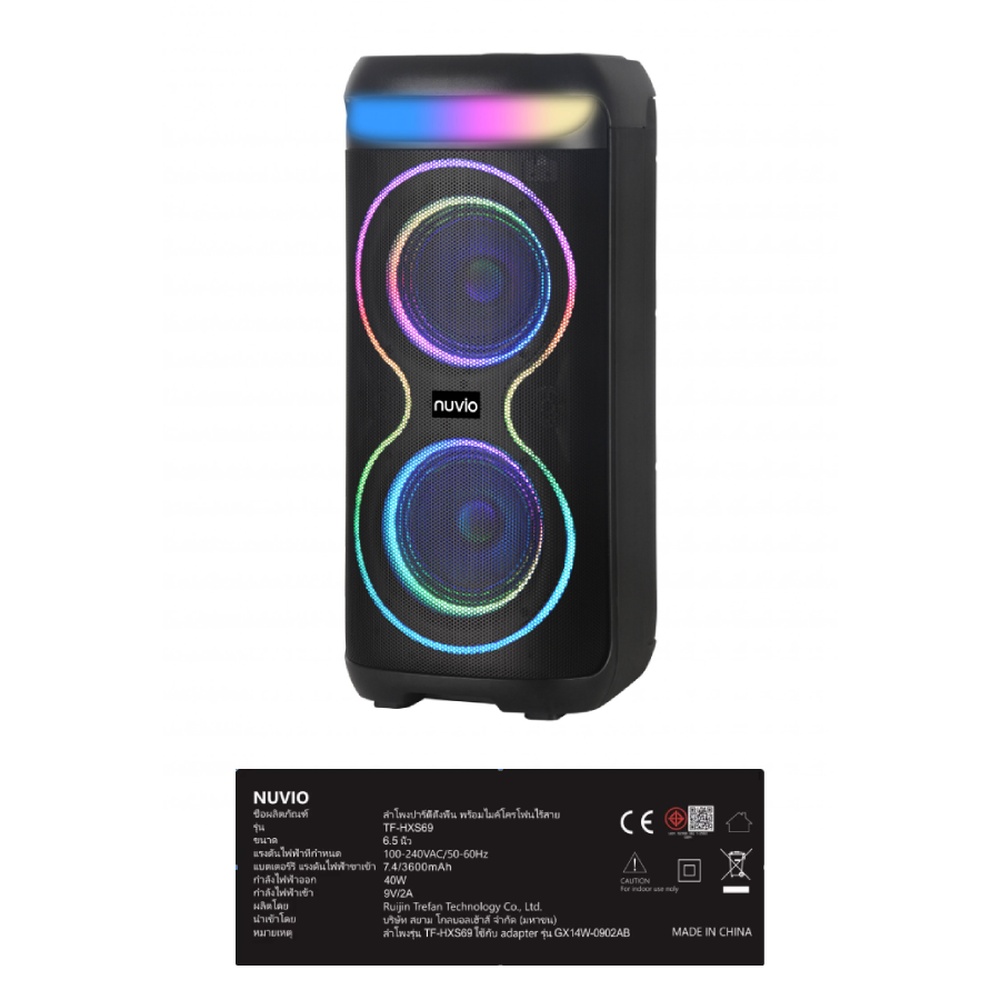 เติมเต็มทุกความมันส์ไปกับ NUVIO TF-HXS69 ลำโพงปาร์ตี้ 6.5 นิ้ว – เสียงคมชัด เบสแน่น พร้อมไฟ RGB สุดอลังการ!