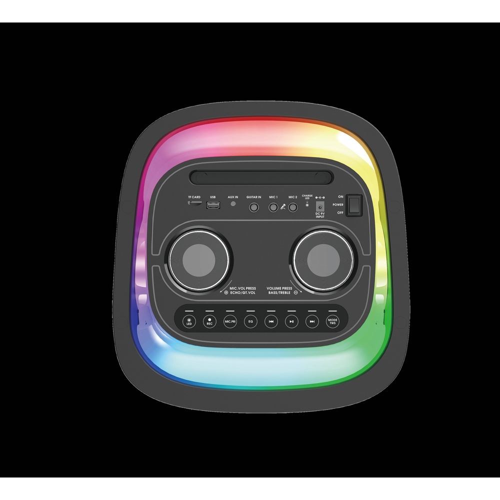 เปลี่ยนทุกที่ให้เป็นเวทีคอนเสิร์ตด้วย NUVIO รุ่น TF-G366 ลำโพงปาร์ตี้ตั้งพื้นทรงพลัง 80W มาพร้อมดอกลำโพงขนาดใหญ่ 8 นิ้ว และไฟ RGB สุดล้ำ พิเศษกว่าใครด้วยช่องเสียบกีตาร์ (Guitar Input) ให้คุณโชว์ฝีมือดนตรีสดไปพร้อมกับเสียงเพลงได้ทันที