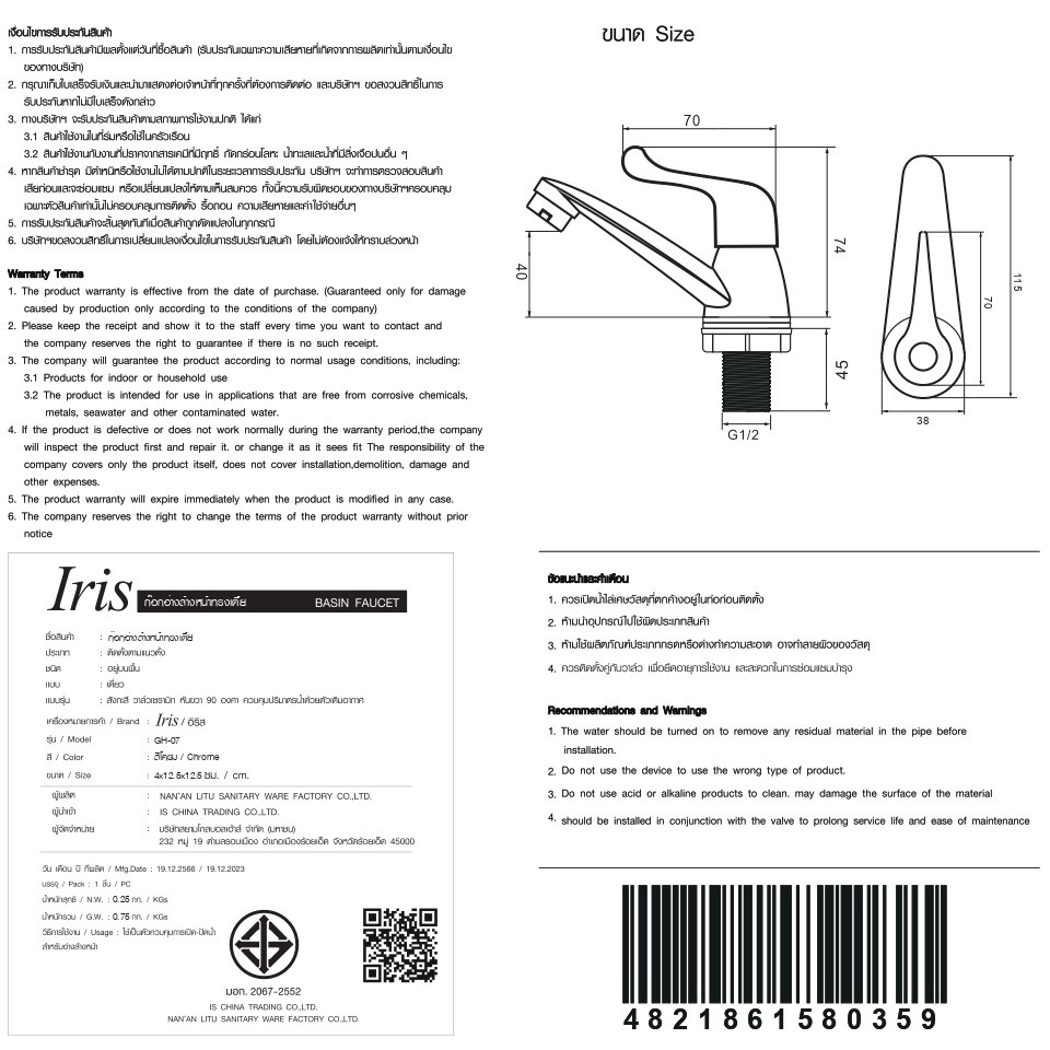 ก๊อกอ่างล้างหน้าเดี่ยวติดตั้งบนเคาน์เตอร์ จาก Iris โดดเด่นด้วยดีไซน์ก๊อกทรงโมเดิร์น พร้อมมือจับแบบก้านปัด เปิด-ปิดใช้งานได้สะดวก และเสริมความมั่นใจต่อสินค้าด้วยคุณภาพการผลิตตามมาตรฐานของ มอก. ควบคุมน้ำได้อย่างมีประสิทธิภาพ และมีรูปแบบทันสมัยเข้ากับห้องน้ำได้ทุกสไตล์