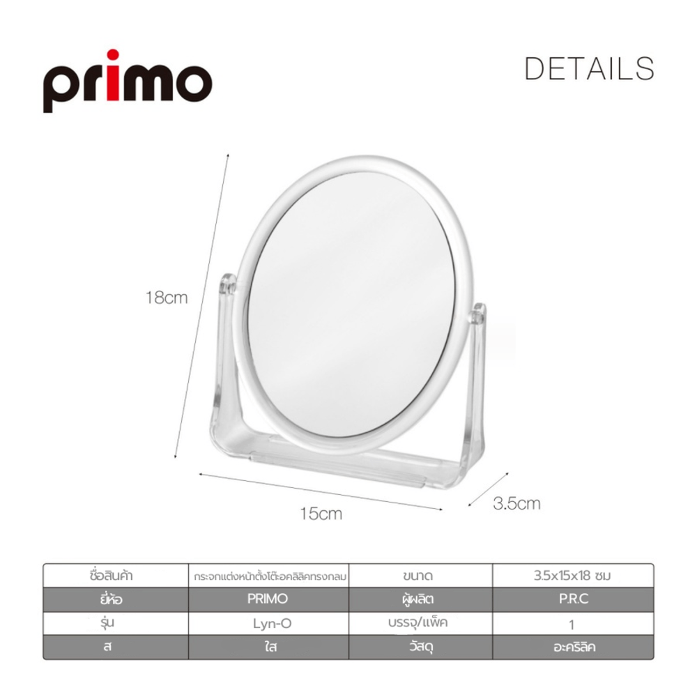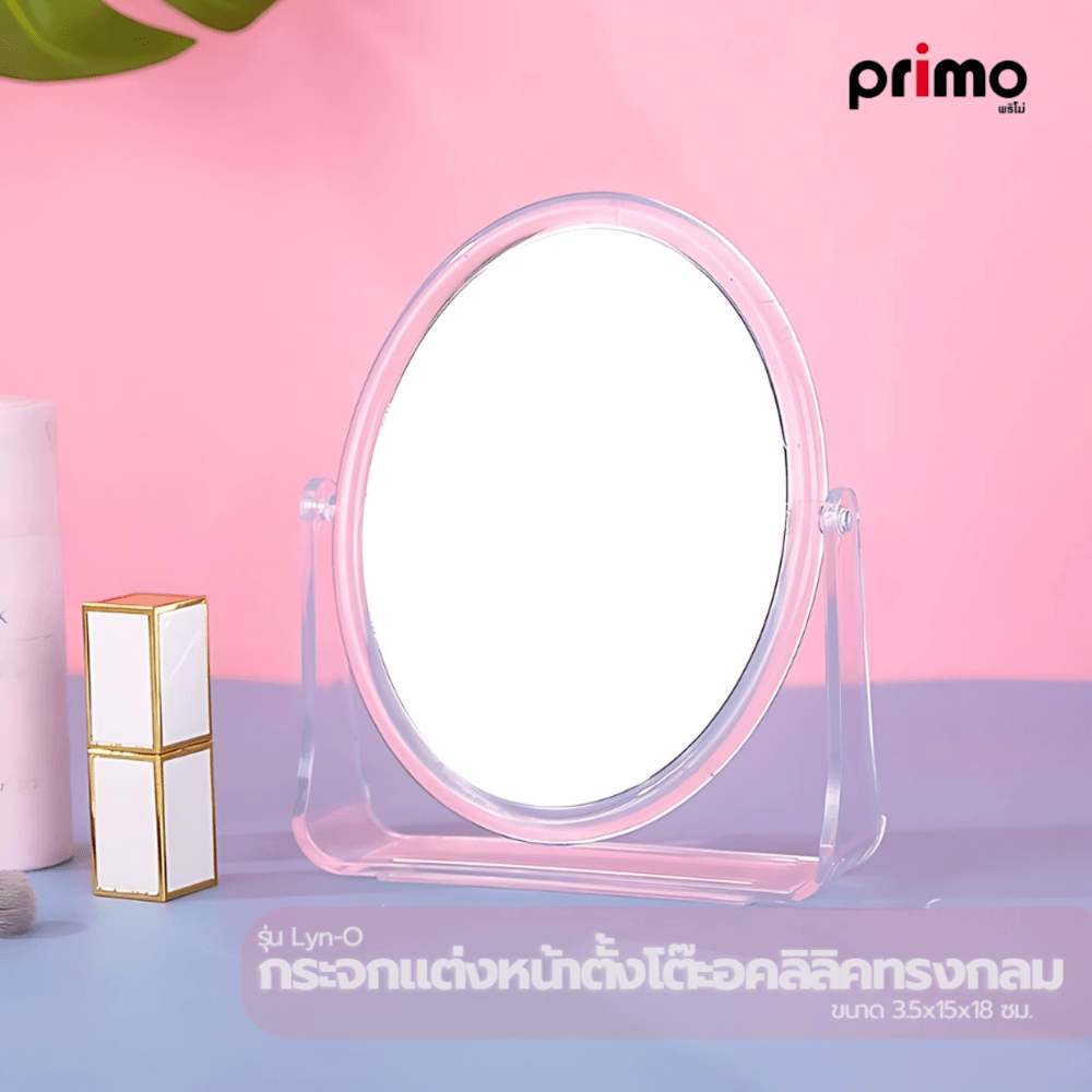 Primo กระจกแต่งหน้าตั้งโต๊ะอคลิลิคทรงกลม รุ่น Lyn-O ขนาด 3.5x15x18 ซม. สีใส
