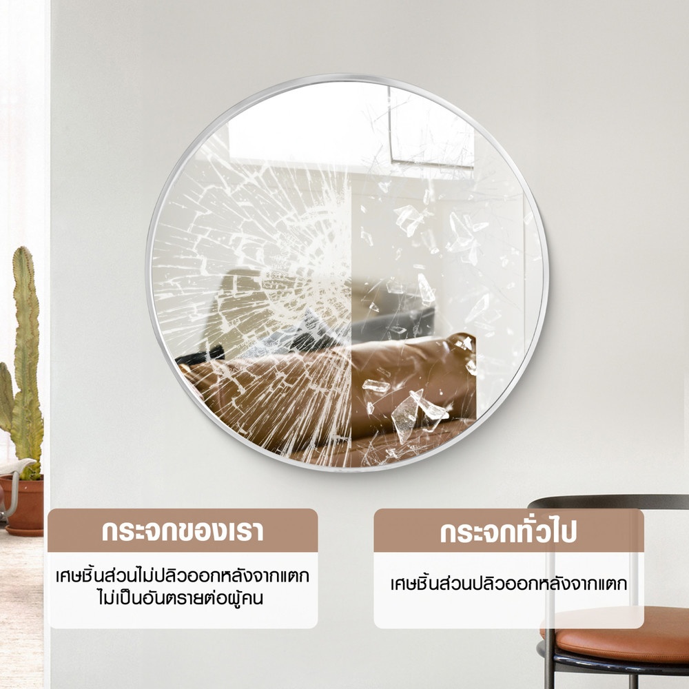 Nice ชุดกระจกอะลูมิเนียมทรงกลม รุ่น แองเจล่า-ซิลเวอร์ ขนาด 60x60 ซม. สีเงิน