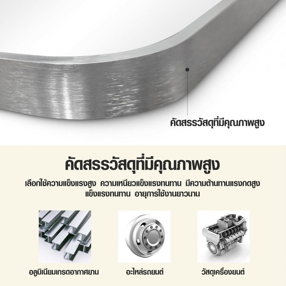 Nice ชุดกระจกอะลูมิเนียมทรงสี่เหลี่ยม 50x70 ซม. รุ่น คูปส์ 01-ซิลเวอร์ สีเงิน