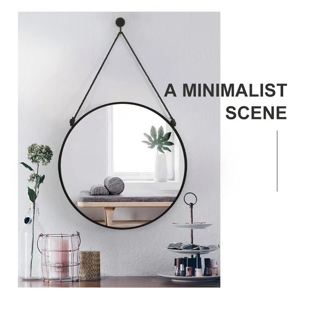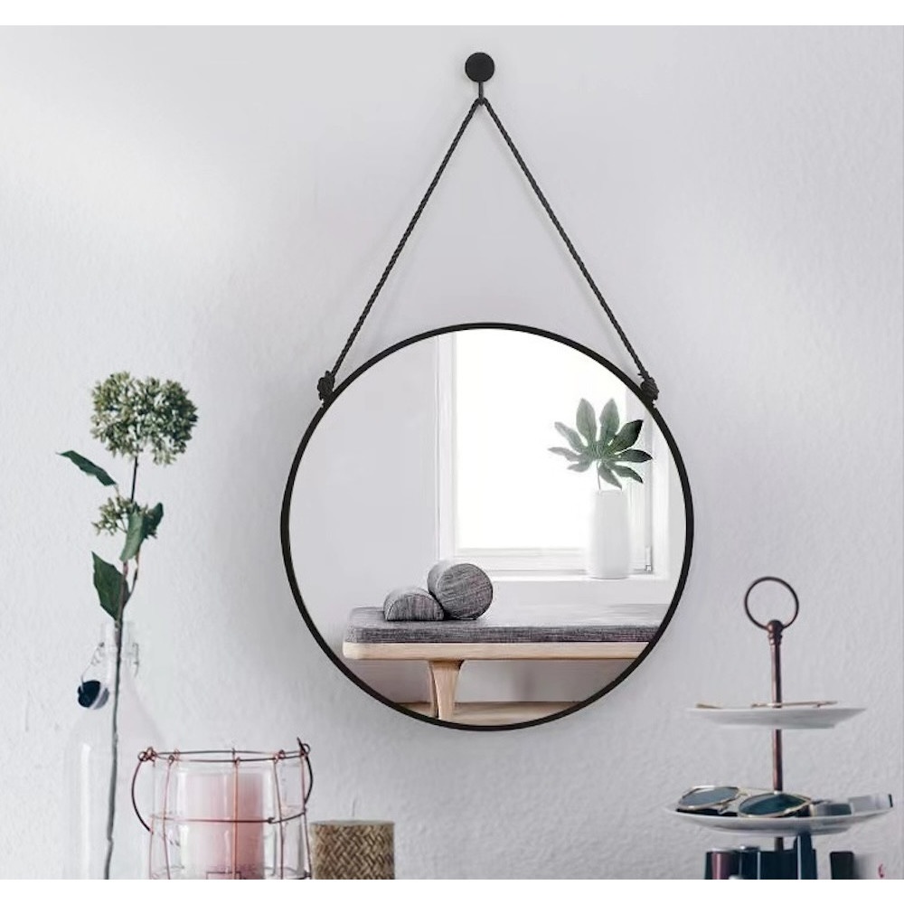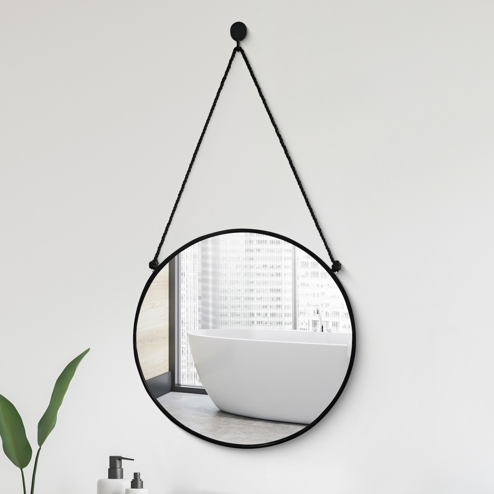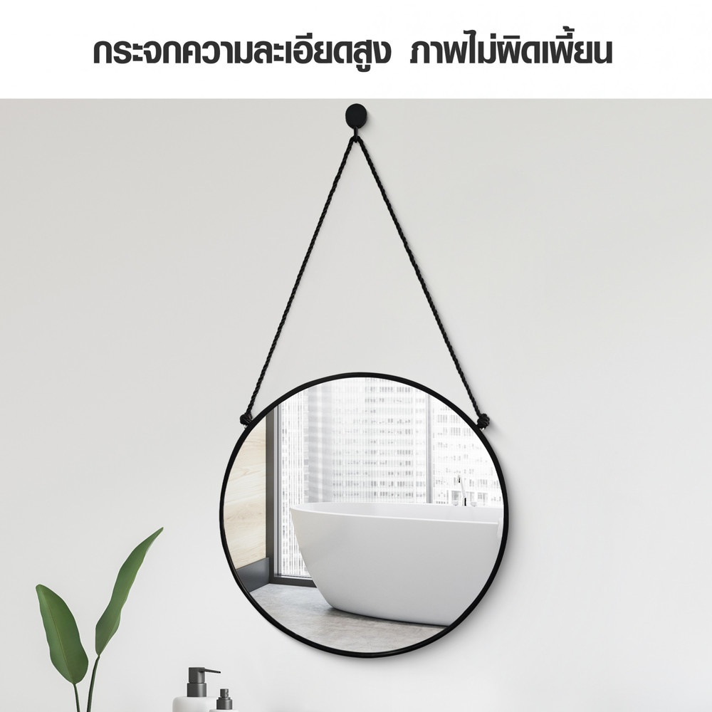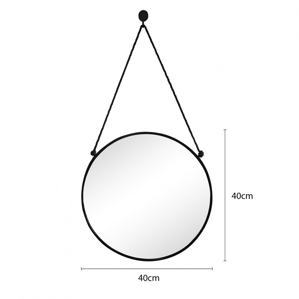 Nice กระจกทรงกลมพร้อมสายแขวน รุ่น เบลว่า-แบล็ค ขนาด 40x40 ซม. สีดำ