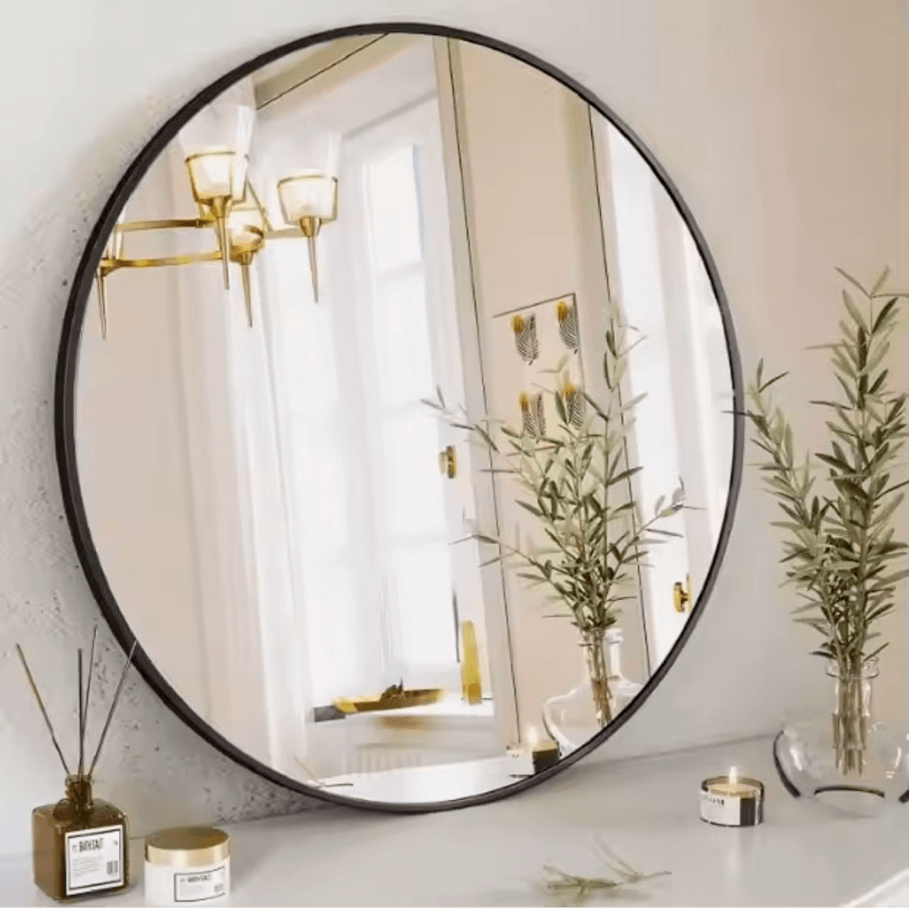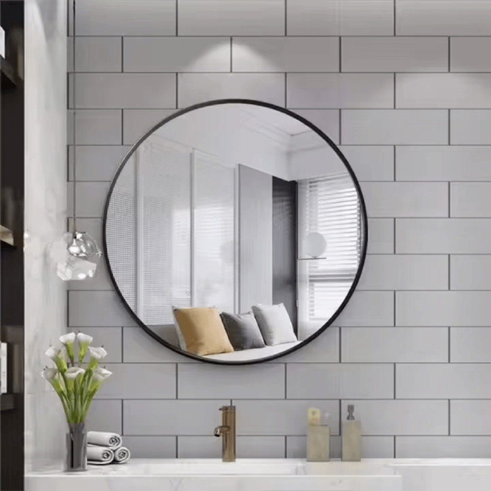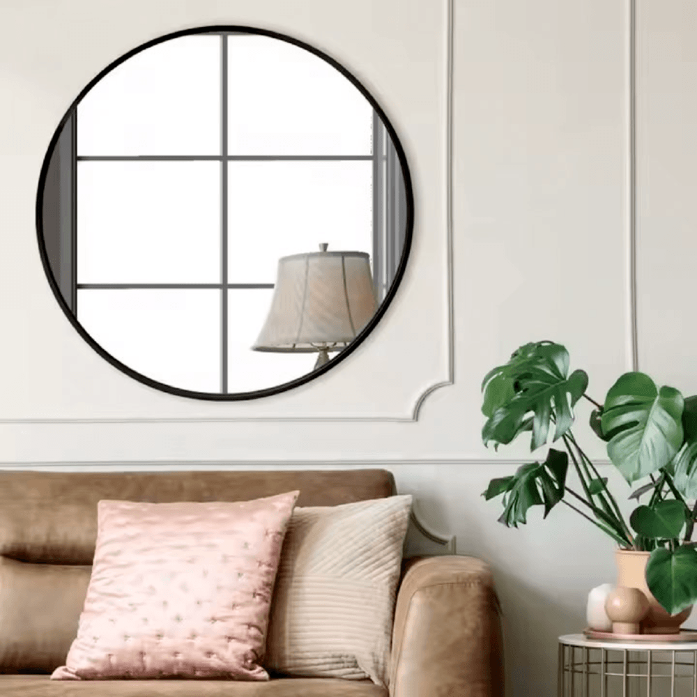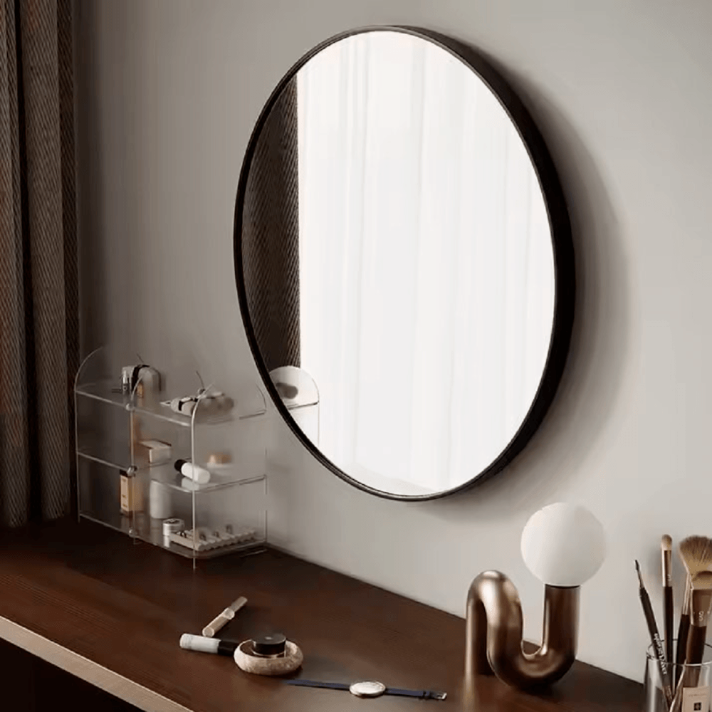 Nice กระจกมีกรอบอะลูมิเนียมทรงกลม รุ่น แองเจล่า-แบล็ค ขนาด 60x60 ซม. สีดำ