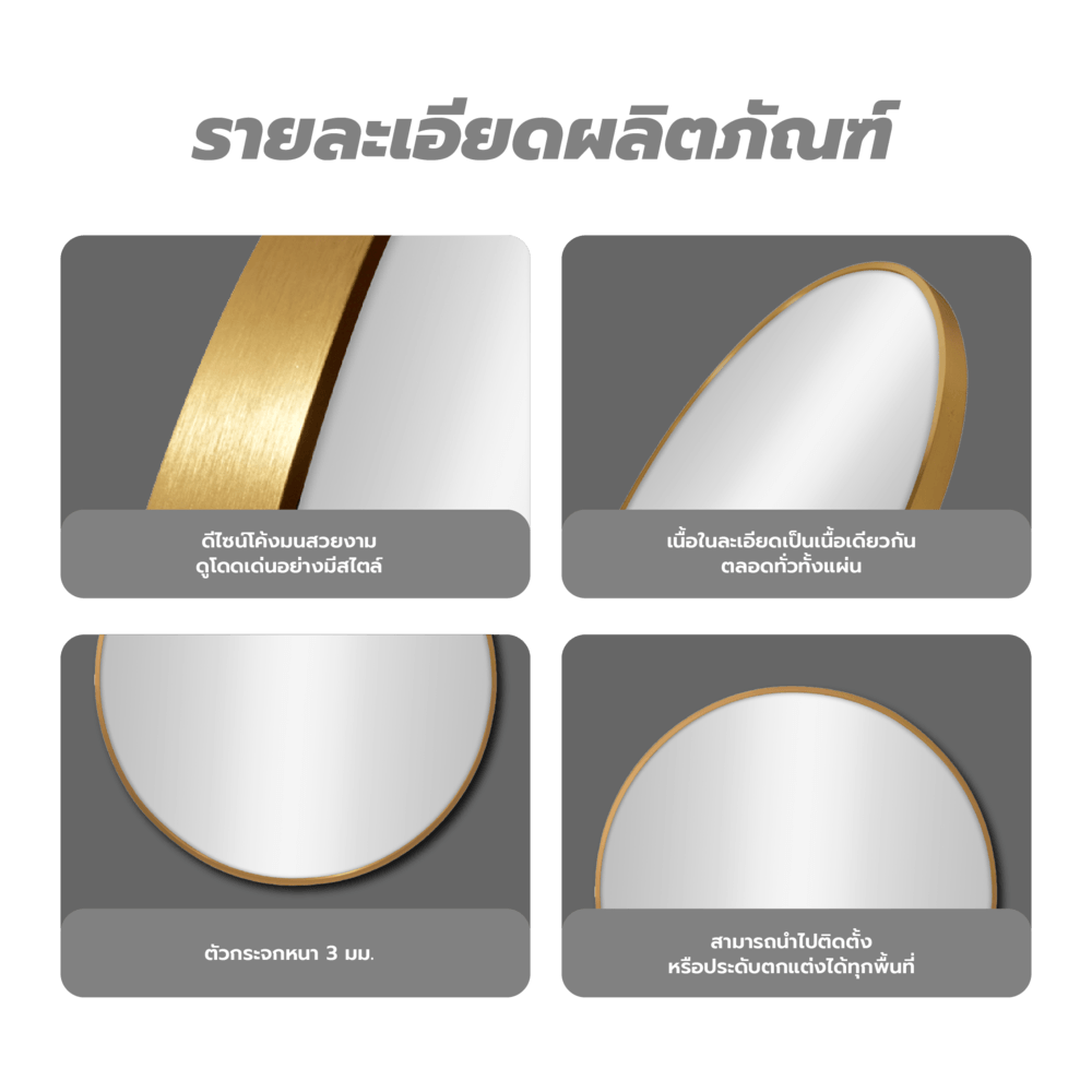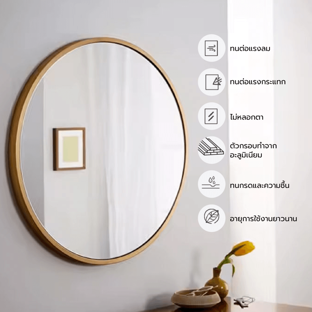 Nice กระจกมีกรอบอะลูมิเนียมทรงกลม รุ่น แองเจล่า-โกลว ขนาด 60x60 ซม. สีทอง