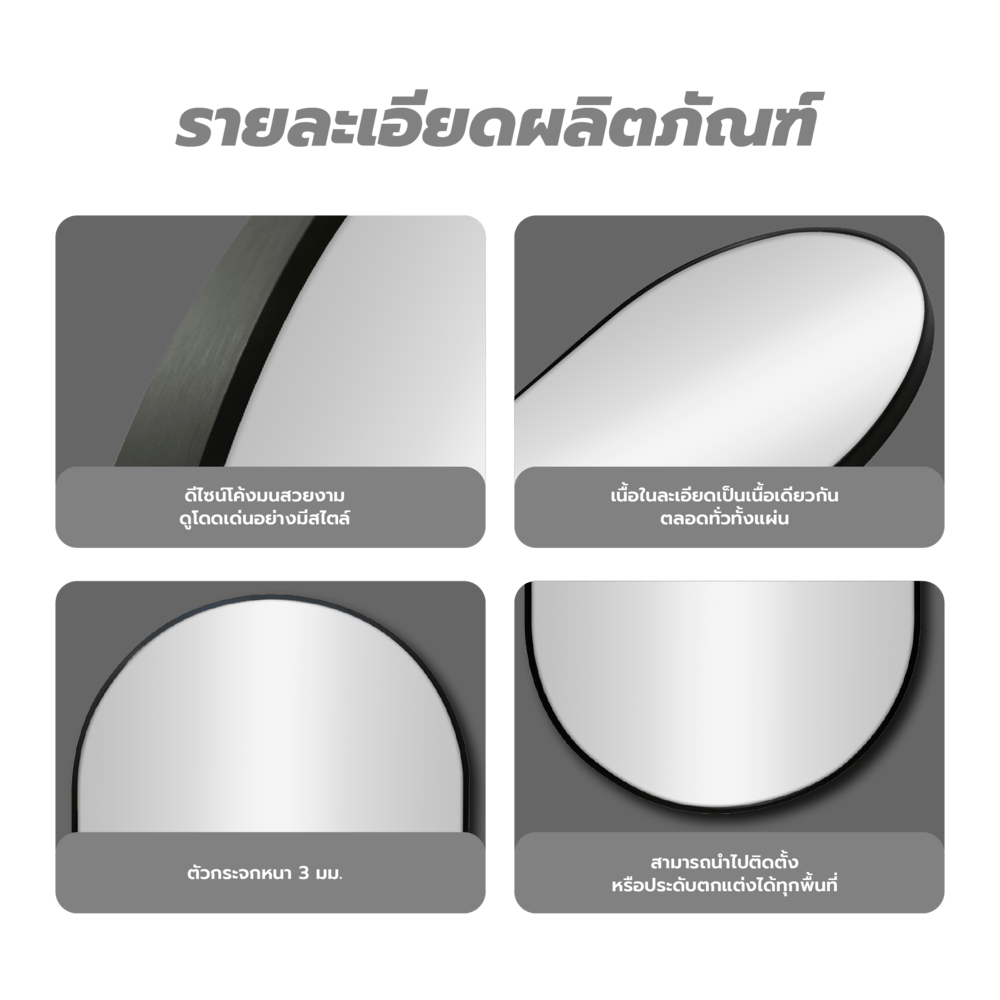 เพิ่มความโดดเด่นให้กับบ้านด้วยกระจกเงามีกรอบอะลูมิเนียมตกแต่ง Nice ชนิดแขวนผนัง ตัวกระจกมีความหนา 3 มิลลิเมตร ให้ภาพเงาสะท้อนที่คมชัด เหมือนจริง ไม่หลอกตา มาพร้อมดีไซน์รูปทรงแบบรี ให้ความแปลกใหม่และสวยงาม เข้าได้กับหลากหลายสไตล์การแต่งห้อง สามารถนำไปติดตั้งหรือประดับตกแต่งผนังบ้านได้ทุกพื้นที่ เพื่อให้คุณใช้ส่องบุคลิกภาพ ทั้งเสื้อผ้า หน้า ผม ช่วยสร้างความมั่นใจก่อนออกจากบ้านในทุก ๆ วัน