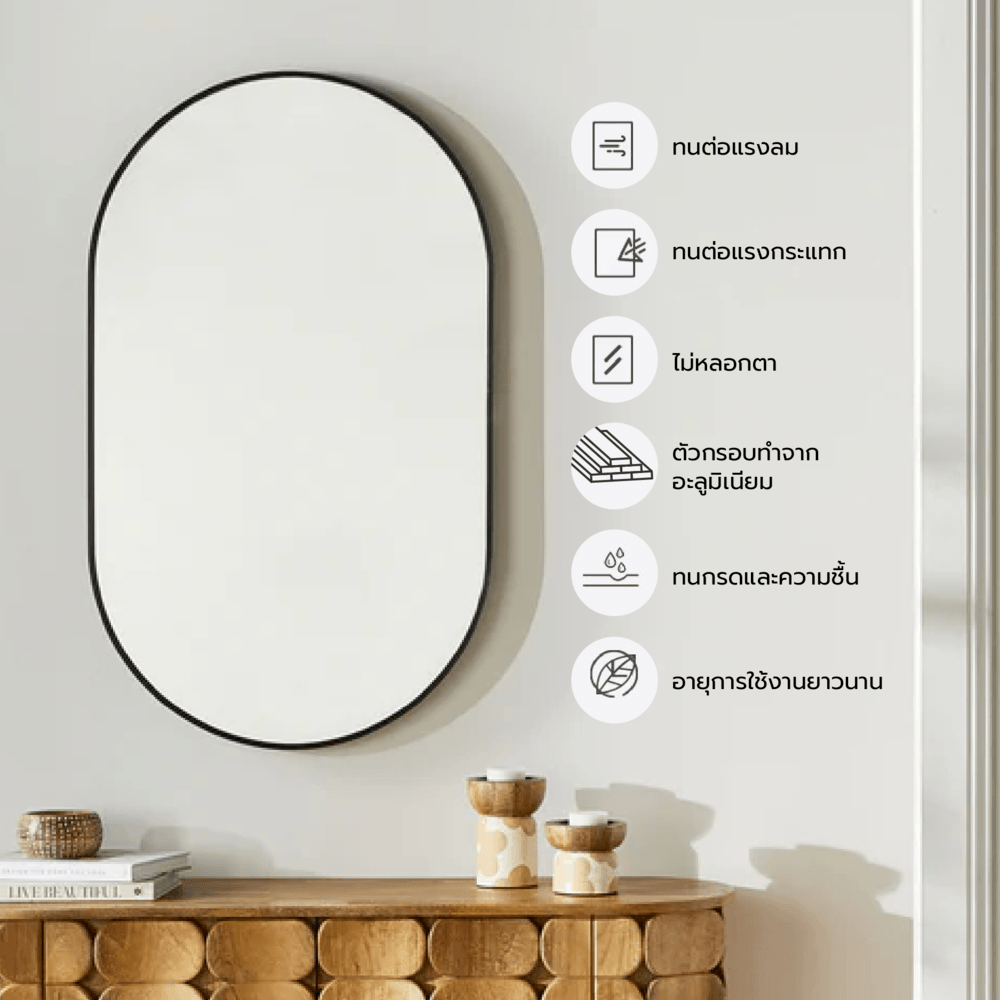 Nice กระจกมีกรอบอะลูมิเนียม รุ่น โอลีเวีย-แบล็ค ขนาด 60x100 ซม. สีดำ