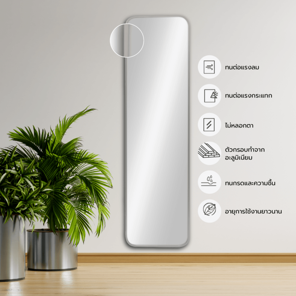 Nice กระจกมีกรอบอะลูมิเนียมทรงเหลี่ยม รุ่น อาเมเรีย-ซิลเวอร์ ขนาด 30x120 ซม. สีเงิน
