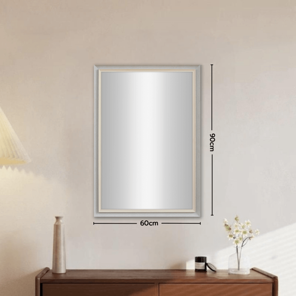 Nice กระจกมีกรอบทรงเหลี่ยม (PS) รุ่น เทียร่า-ไลท์เกร ขนาด 60x90 ซม. สีเทาอ่อน