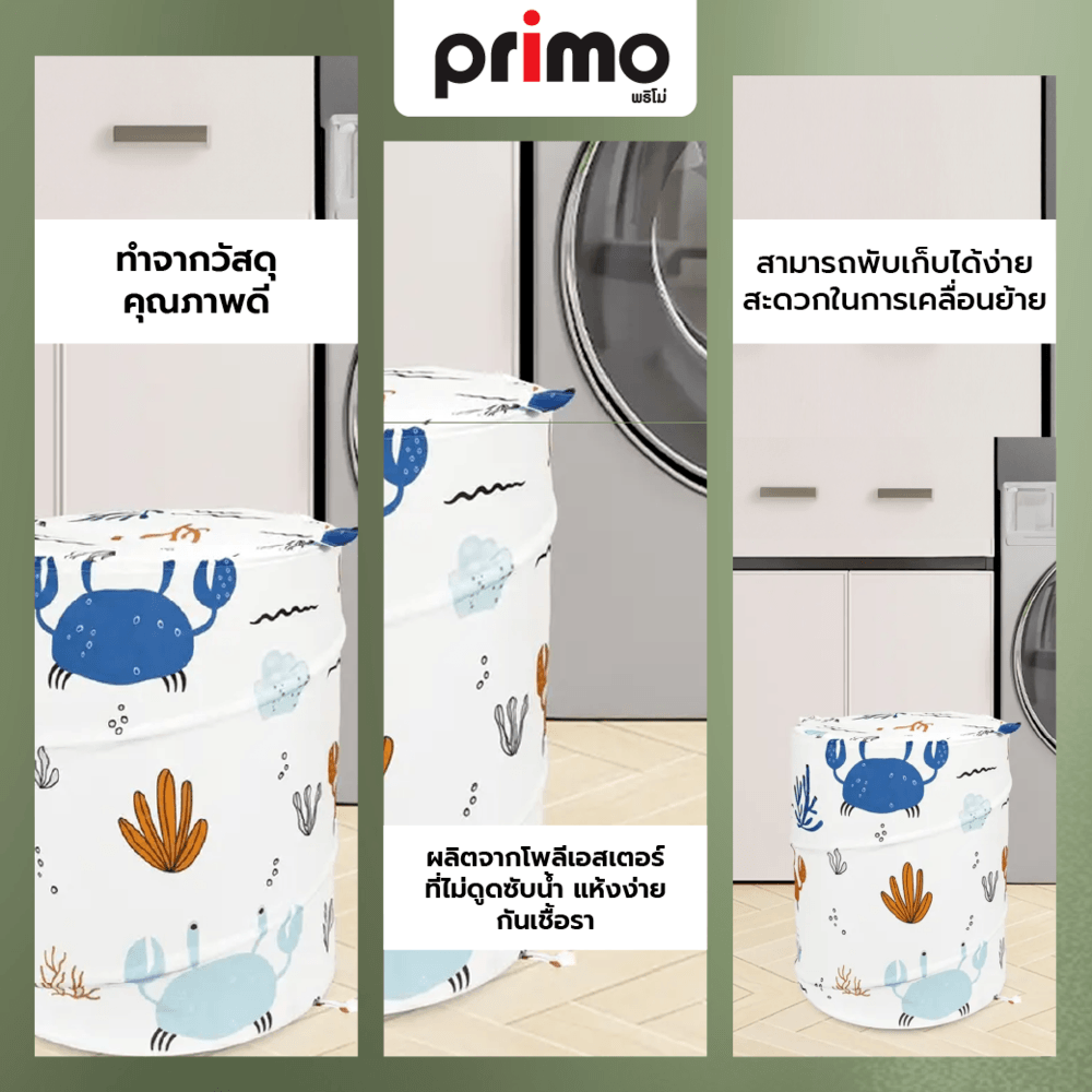 น้ำหนักเบาและสะดวกในการเคลื่อนย้าย - ตะกร้าโพลีเอสเตอร์ลายปูมีน้ำหนักเบา ทำให้เคลื่อนย้ายสะดวก ไม่ว่าจะย้ายไปห้องซักผ้า ห้องนอน หรือห้องน้ำ ก็ทำได้ง่าย