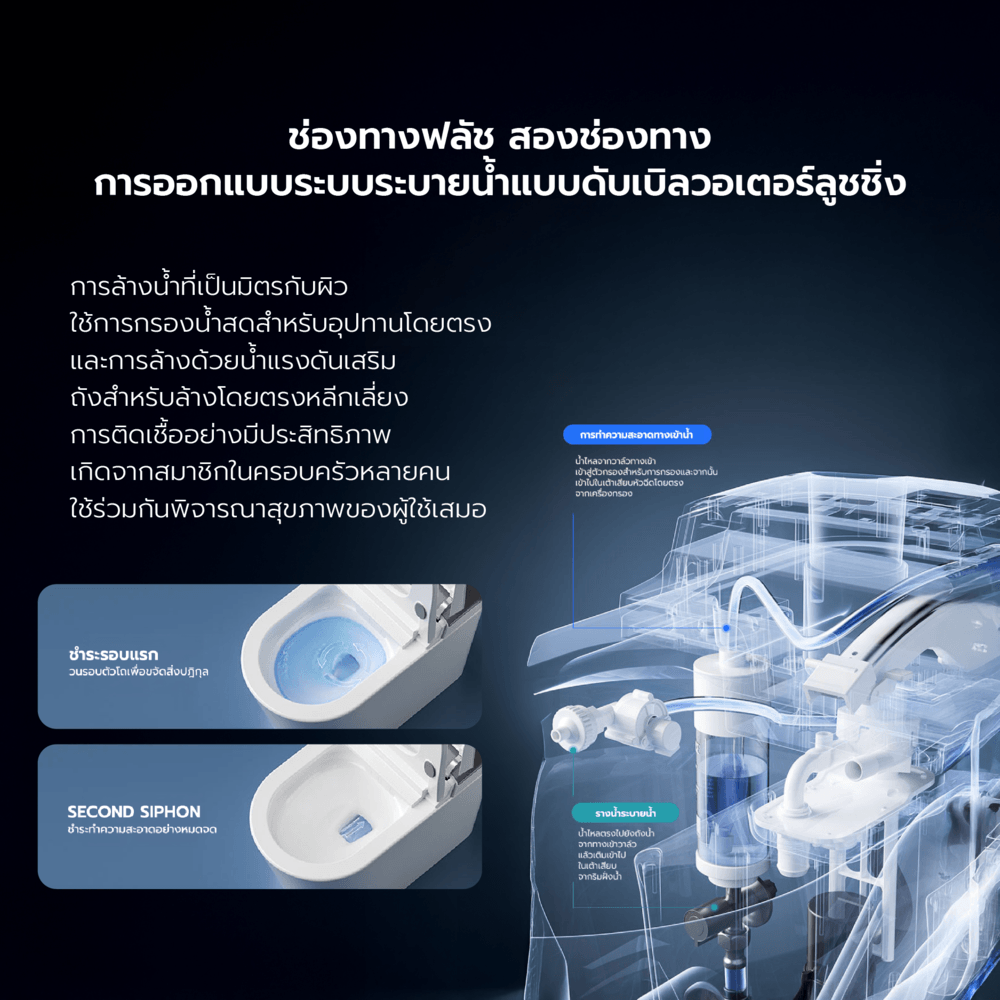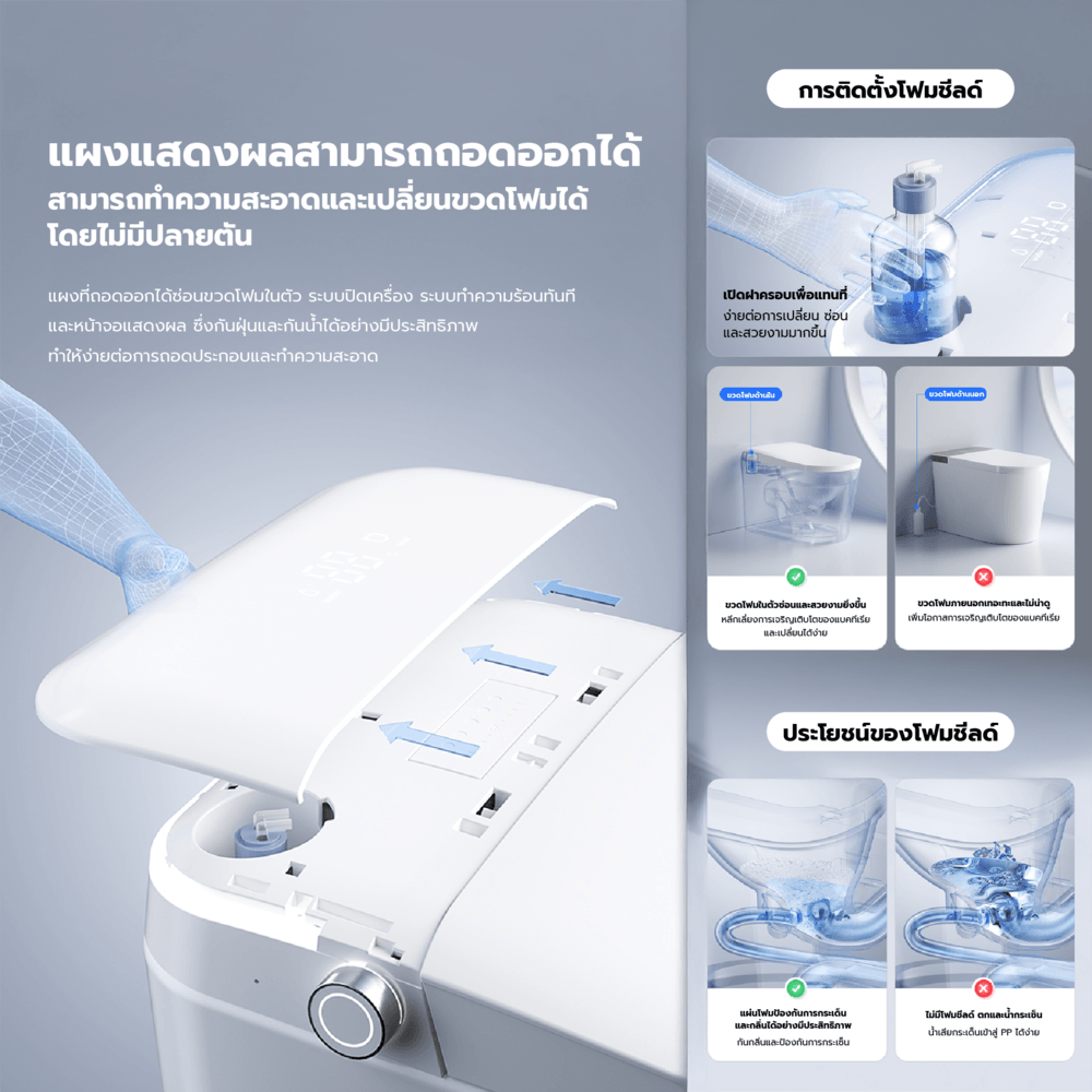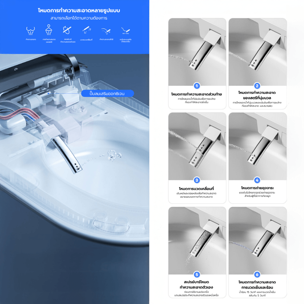 ด้วยวัสดุคุณภาพสูง ทนทาน และทำความสะอาดง่าย สุขภัณฑ์อัจฉริยะยังช่วยยกระดับสุขอนามัยด้วยฟีเจอร์ฆ่าเชื้อด้วยแสง UV และระบบกรองน้ำเพื่อความสะอาดเหนือระดับ ออกแบบมาเพื่อรองรับทุกไลฟ์สไตล์และเข้ากับการตกแต่งทุกแบบ สุขภัณฑ์อัจฉริยะไม่เพียงแต่เพิ่มความสะดวกสบาย แต่ยังช่วยประหยัดทรัพยากรและเป็นมิตรต่อสิ่งแวดล้อม มอบประสบการณ์ในห้องน้ำที่สมบูรณ์แบบสำหรับทุกคนในครอบครัว