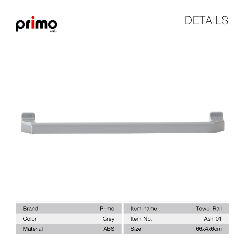 Primo ราวพาดผ้าพลาสติก รุ่น Ash-01 ขนาด 66x4x6 ซม. สีเทา