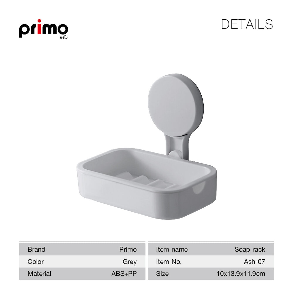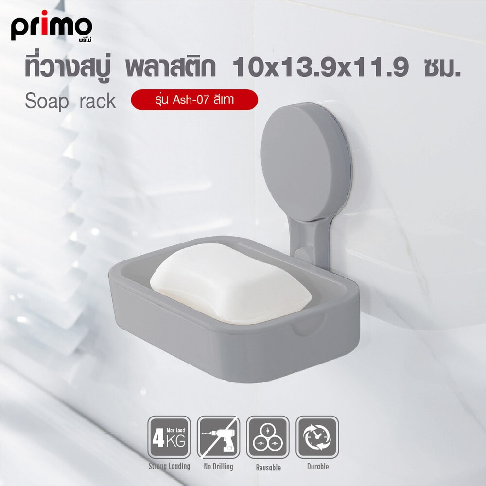 เติมเต็มความเรียบหรูให้กับห้องน้ำของคุณด้วย ที่วางสบู่พลาสติกติดผนัง Primo รุ่น Ash-07 สีเทา ที่ออกแบบมาเพื่อความสะดวกสบายในทุกการใช้งาน!