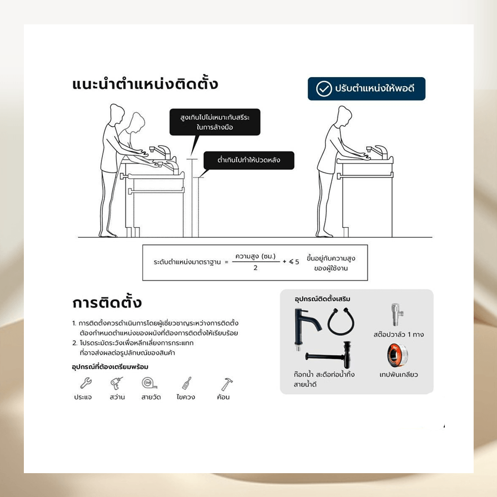 ติดตั้งภายในบ้านหรือในห้องน้ำ เช่น อาคาร สถานที่ โรงแรม