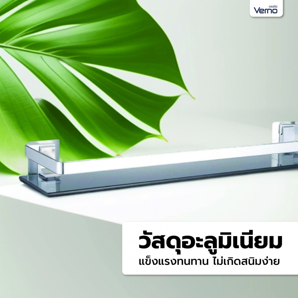 ดีไซน์เรียบหรูและทันสมัย: ด้วยขอบอะลูมิเนียมที่มีความเรียบหรู ชั้นวางกระจกของ Verno จึงดูมีสไตล์ทันสมัย และเข้ากับการตกแต่งแบบมินิมอลหรือโมเดิร์นได้ดี